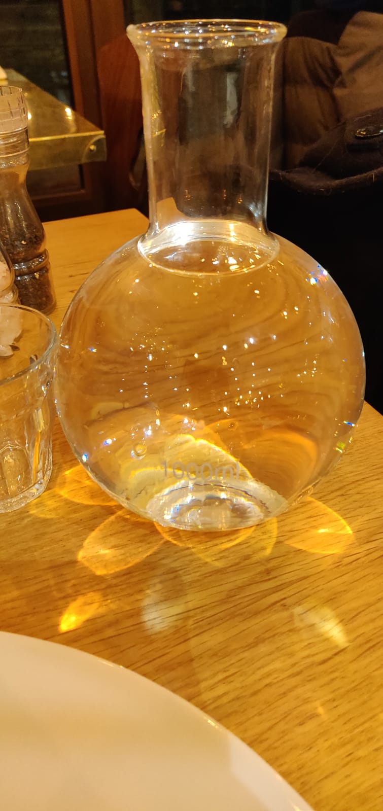 Très beau décor d'intérieur et d extérieur. J'ai pu prendre un menu et le cocktail mystère ! Le cocktail assez bon. L entrée était très bonne, le dessert très bien aussi. Mais le plat principal, la viande avant rien de bien, juste une viande basique sans plus. Par contre le serveur a renversé la carafe d'eau sur moi... J'avais mon casque moto mouillé de l'intérieur et de nettoyer avec une serviette...
