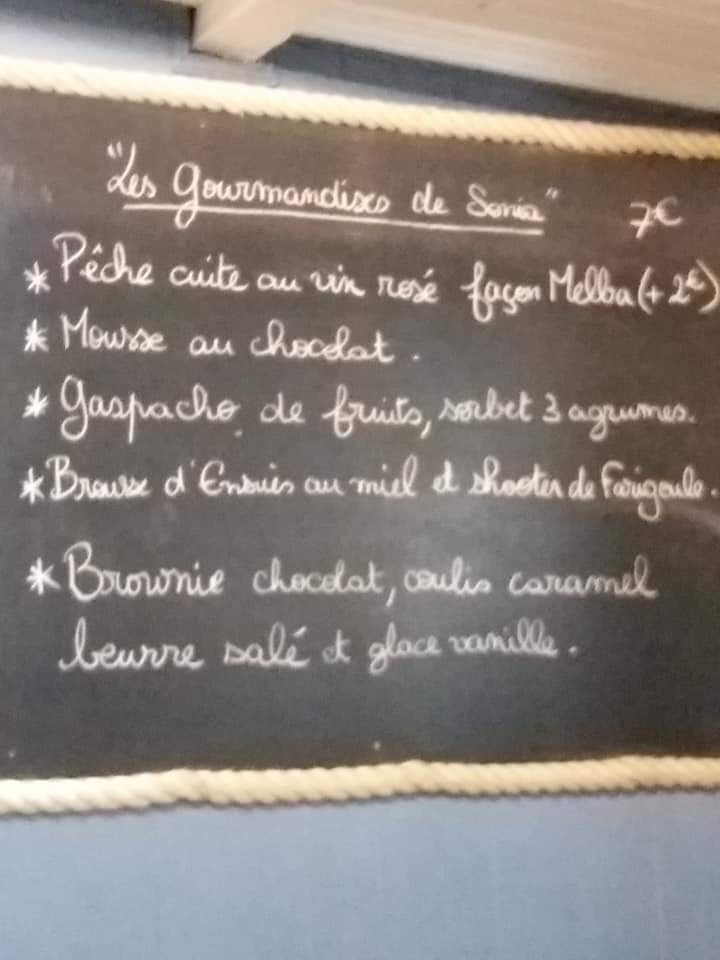 Superbe découverte, une carte de poisson pêché du jour ! Pour ma part du saint pierre que on m'a gentiment découpé et mon mari une assiette d'espadon patates douces très fine! La friture d'anchois avec aïoli, un régal et enfin un restaurant où l'on peu manger autre chose qu'un fondant au chocolat ou un tiramisu en dessert ! Ile flottante pastèque fraise ; originale, légère ! Le personnel très sympa, en ce qui concerne le prix il vaut ce que l'on a dans l'assiette ! Mais pour un budget plus serré ils font de très belles pizza qui donnaient envie et on pourrait prendre simplement un plat et un dessert celà suffit largement, nous on a un peu exagéré mais on s'est fait vraiment plaisir ! Encore merci ! De plus prennent les chèques vacances ANCV !