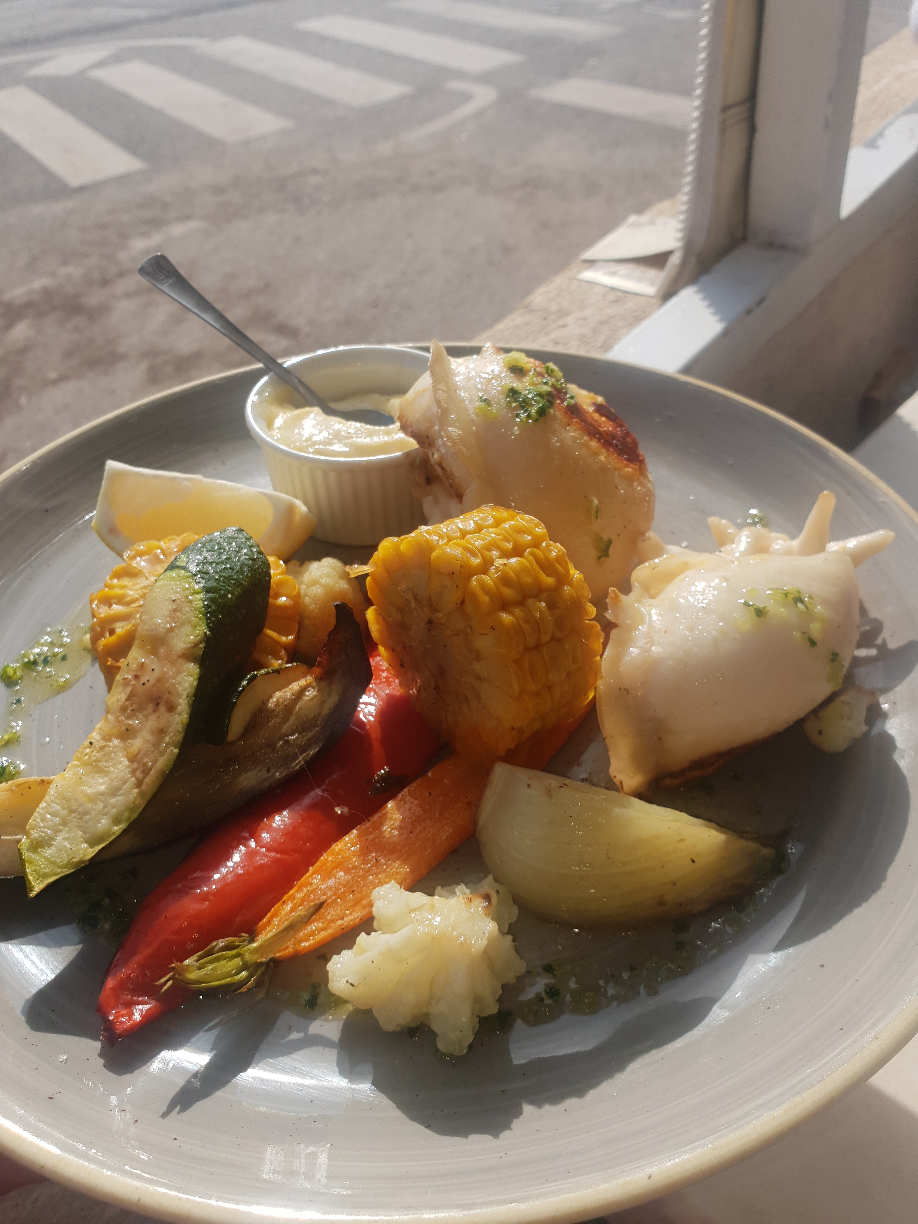Très bon : le poulpe grillé accompagné de petits légumes un délice. Çopieux (environ 300gr). Les desserts également savoureux et conséquent. Prix correct Resto complet un dimanche midi malgré deux salles. Je vous conseille de réserver car très sollicité. Situé face a la petite plage de Carro, jolie vue sur l entrée du port. Serveuses souriantes et attentives.