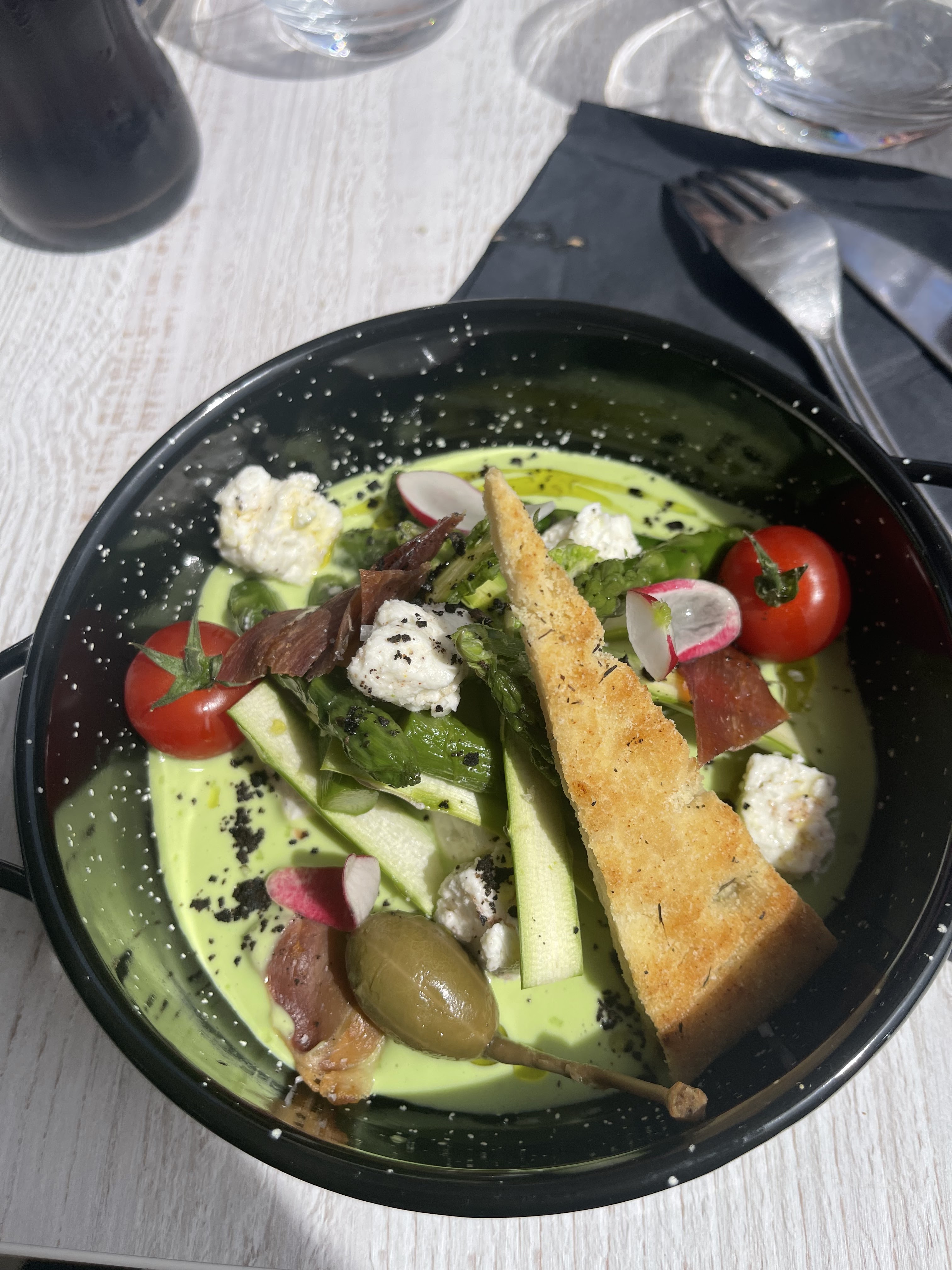 Une merveilleuse expérience culinaire. Carte uniquement faite des suggestions du jour. Donc du frais seulement. Un tartare de gambas délicieux dans son gaspacho vert, une seiche grillée, très bien cuite, ni molle, ni élastique, ni dure, avec un accompagnement très goûteux. Quant au dessert avec crémeux d'avocat... Tout délicieux. Les prix sont à la hauteur de la qualité (compter de 25 à 30 € le plat). Petit bémol : réserver à l'avance est obligatoire, car, victime de son succès, il ne sera pas possible d'arriver et manger directement sans réservation !