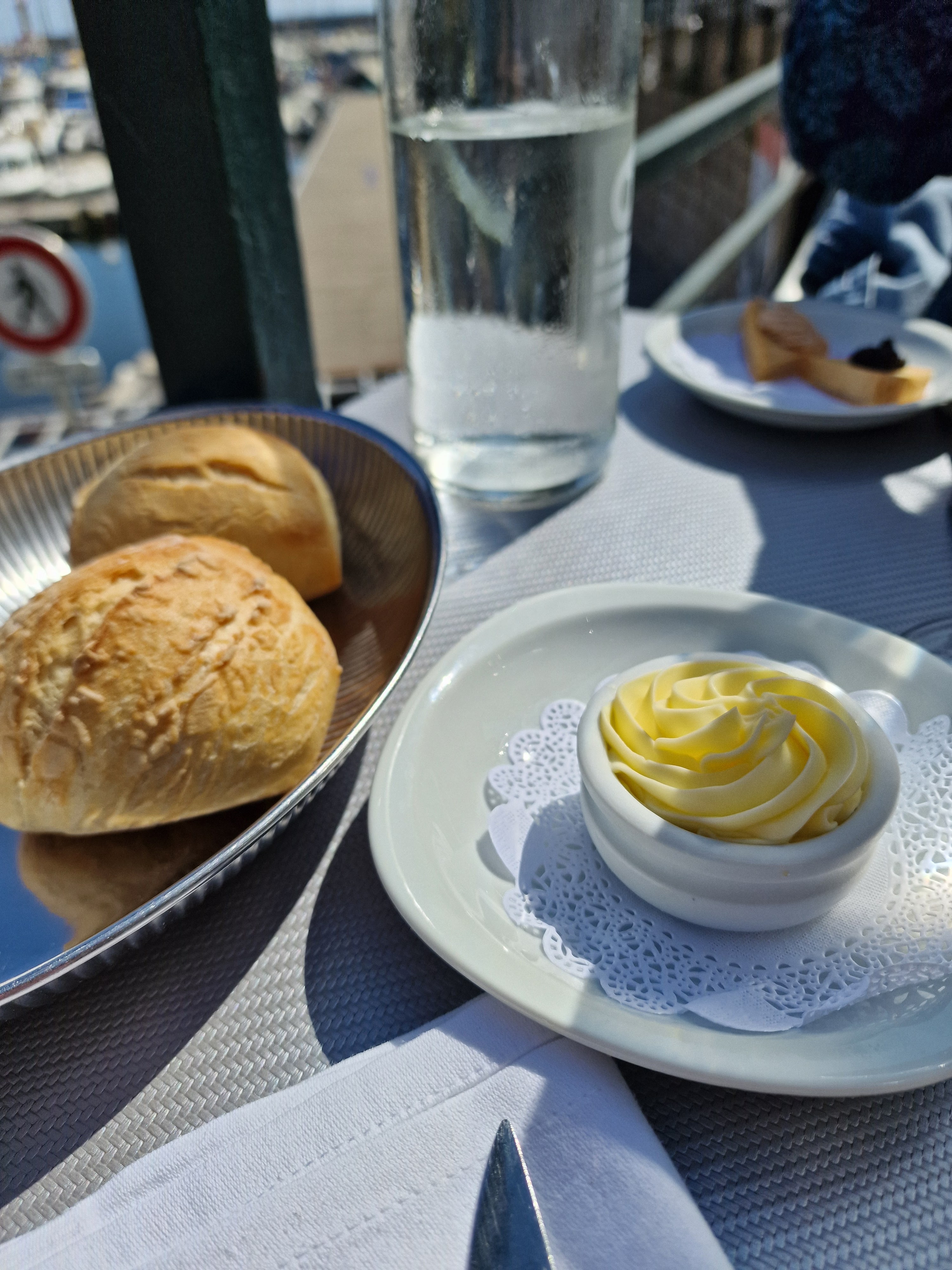 Un super repas de poisson frais et cuit juste avec une vue magnifique sur le port...un tout petit plus de sourire et cela aurait été parfait