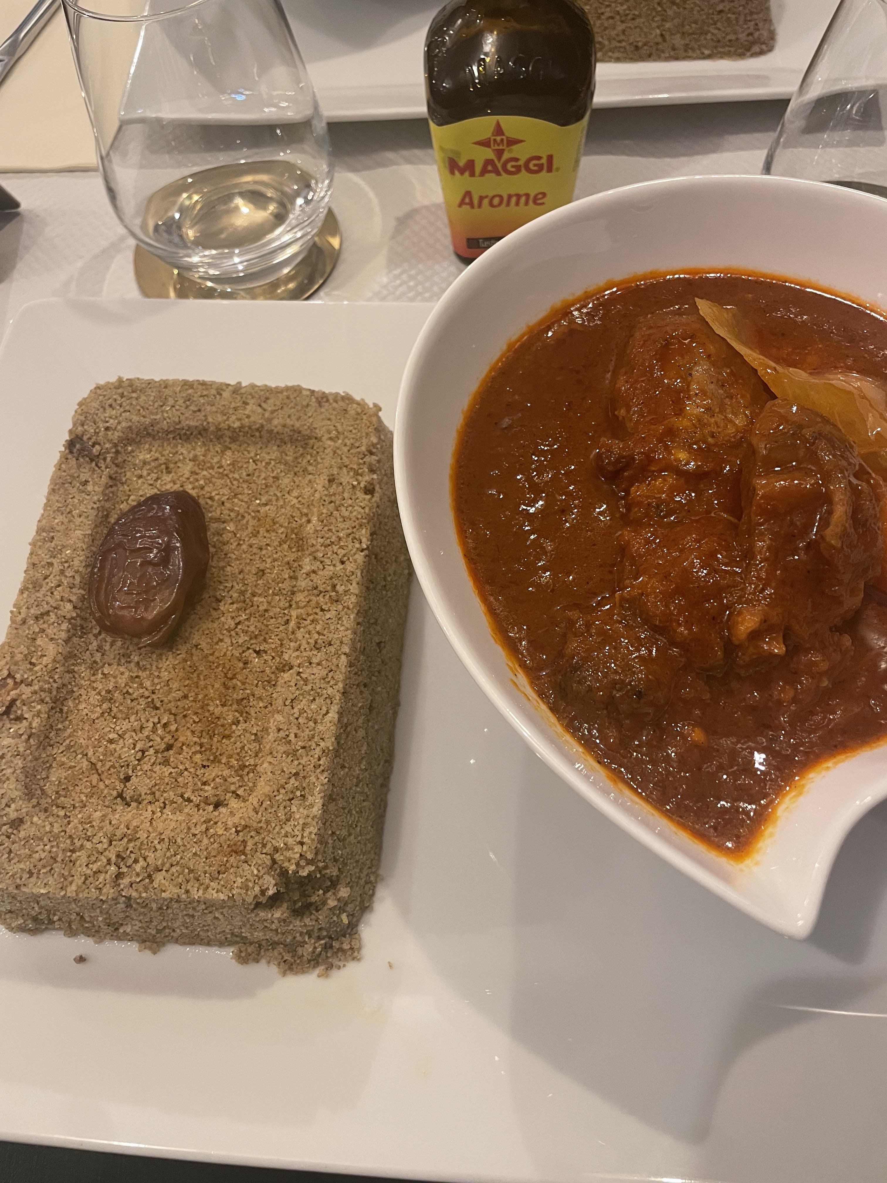 Je suis rentré chez moi avec mon mafé et une faim de malade : plat archi décevant. peu de goût de cacahuète mais on sentait bien le gras. Riz mal cuit et seulement 2 petit morceaux de viande dont un c’était du gras et l’autre avec un morceau d’os Je me suis arrêté de manger pour poster tellement je suis vénère. Je vais jeter le plat donc 13€ à la poubelle. Ça m’apprendra à changer mes habitudes
