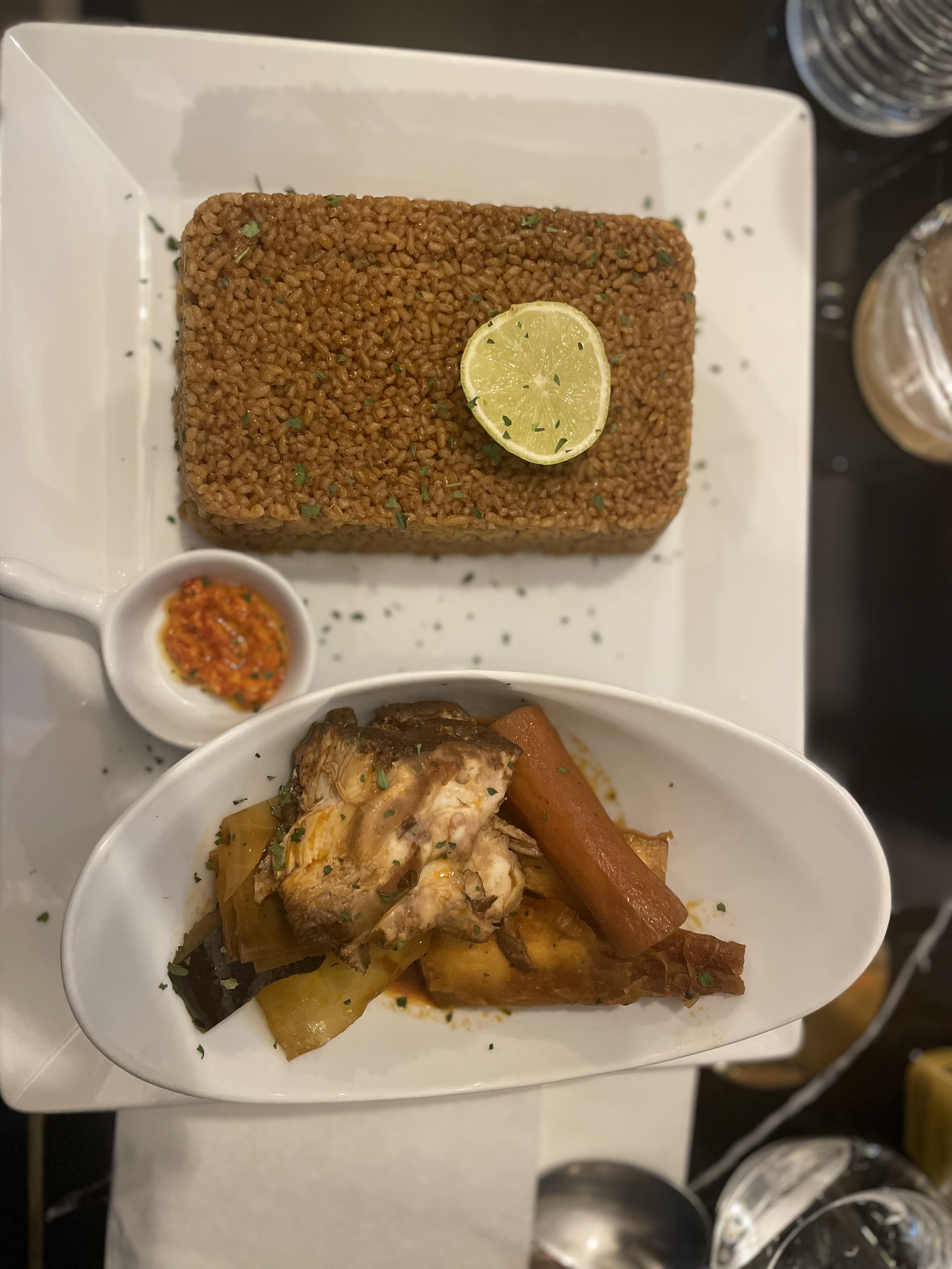 Bonjour Très déçu de la qualité du poulet quand on fait des plats à 15, 18 euro ayez au moins la décence de prendre du poulet fermier, le tieb est très moyen et concernant les portions je suis resté sans voix digne d'un plat pour un enfant de 2 ans, hors les plats africain sont connus pour être copieux... Le chef doit impérativement revoir cela car c'est très médiocre