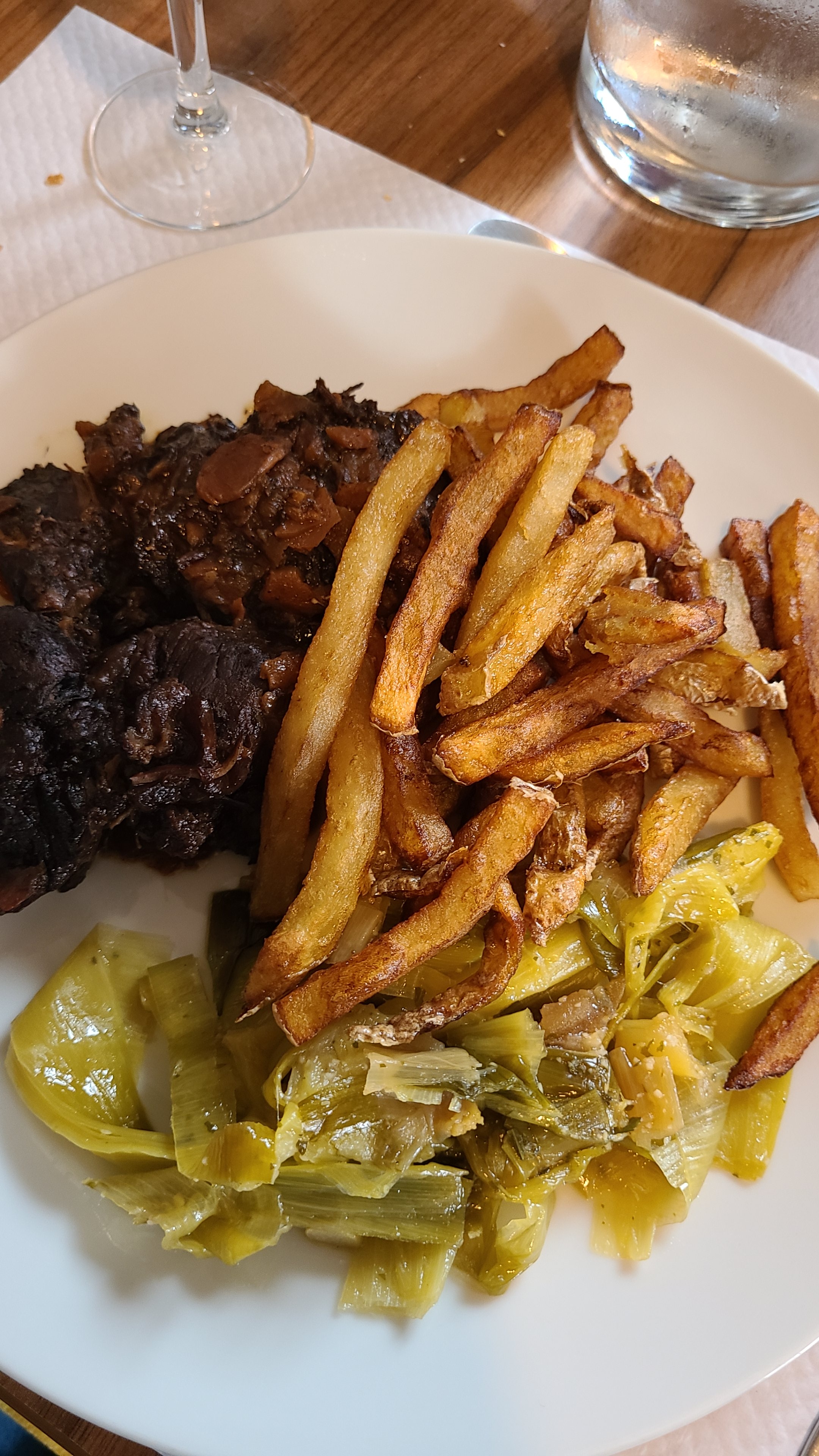 Nourriture délicieuse et bon marché, large sélection de vins et excellent service. Pour 16 euros, une entrée savoureuse, un plat magnifique et un dessert fondant. Nous recherchons des restaurants comme celui-ci lors de nos voyages en France !