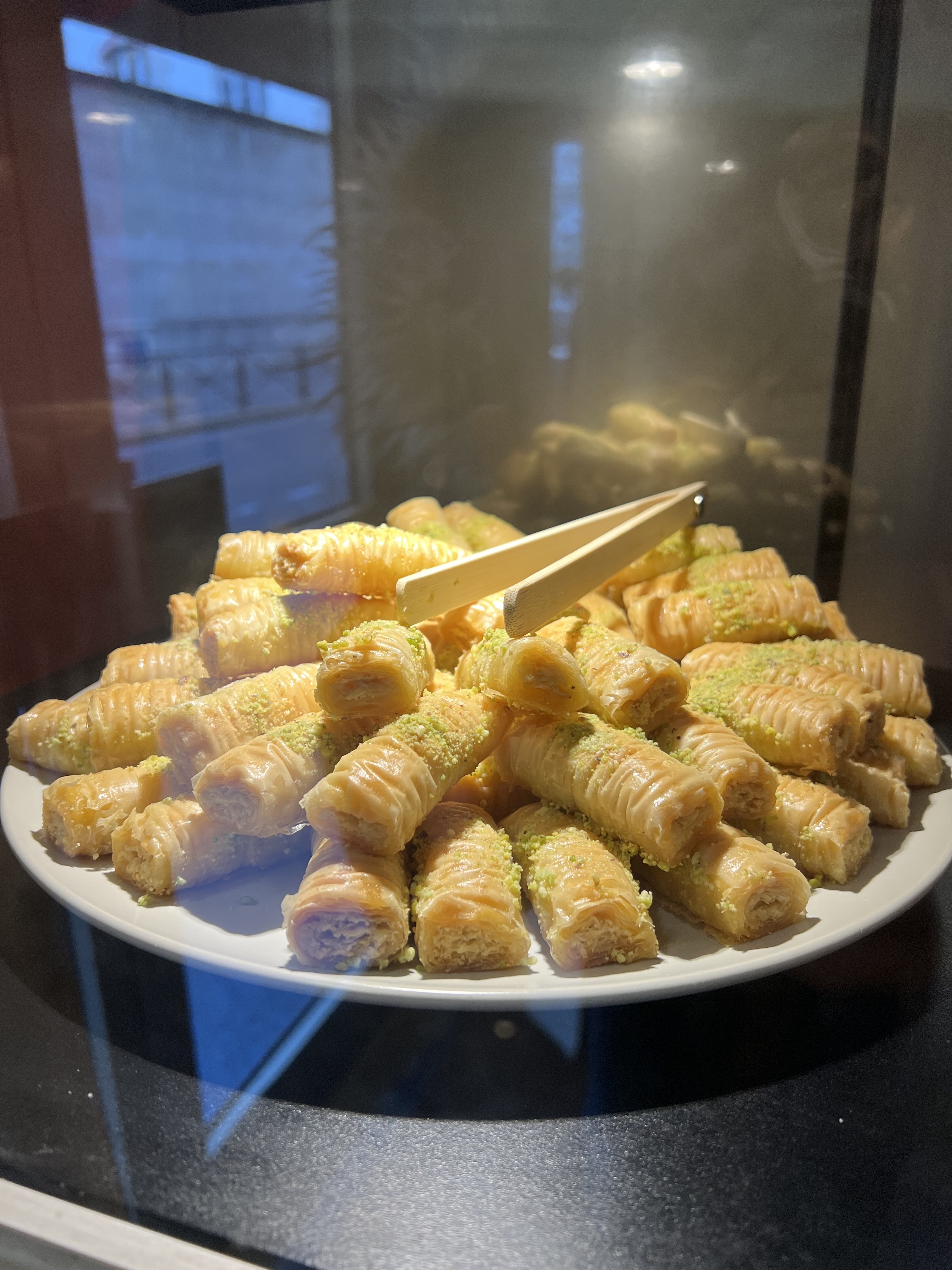 Après un diner délicieux on est en train de goûter des baklavas super bons que le propriétaire vient de nous offrir avec le the aussi - top!