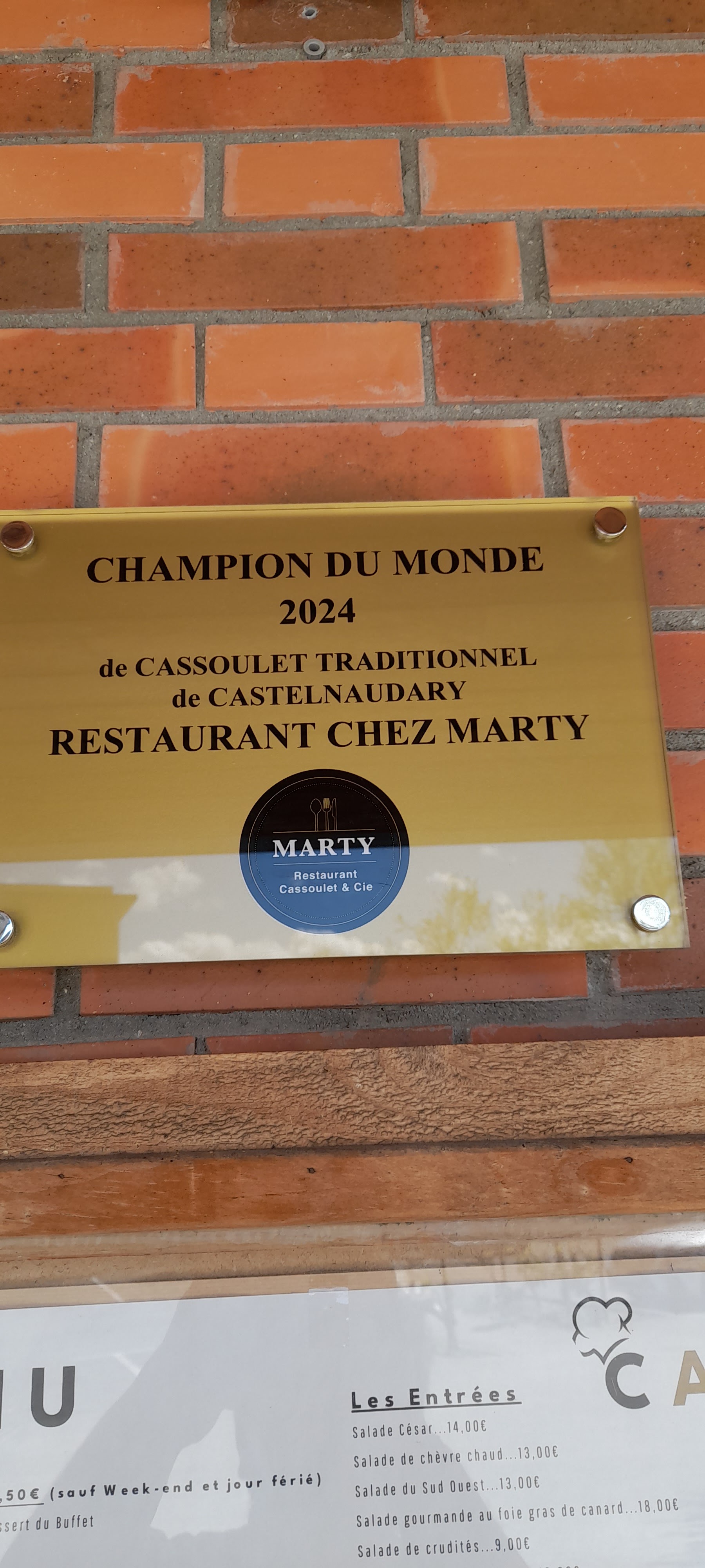 Nous nous sommes arrêtés par hasard dans ce restaurant en sortant de l autoroute .très agréable surprise ....tres bon accueil ..leur spécialité le cassoulet ( on ne le savait pas ..) on a pris tranche de boeuf ...un vrai délice des assiettes bien rempliespour un prix plus que correct et du coup on a demander du cassoulet à emporter .très bon ...encore merci aux restaurateurs Marty .....