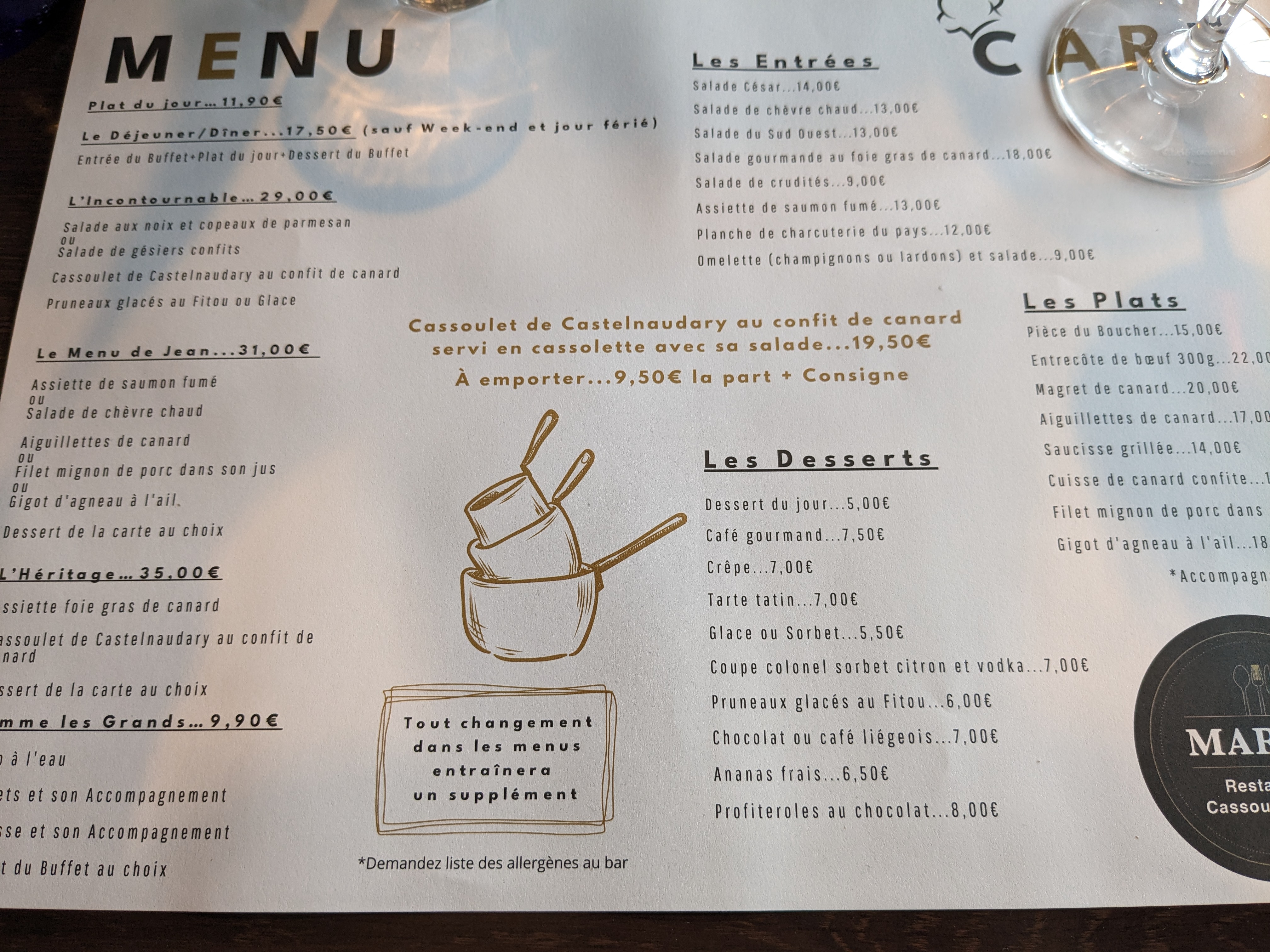 Très bon cassoulet Ambiance sympa Prix correct On est un peu serré !!!!