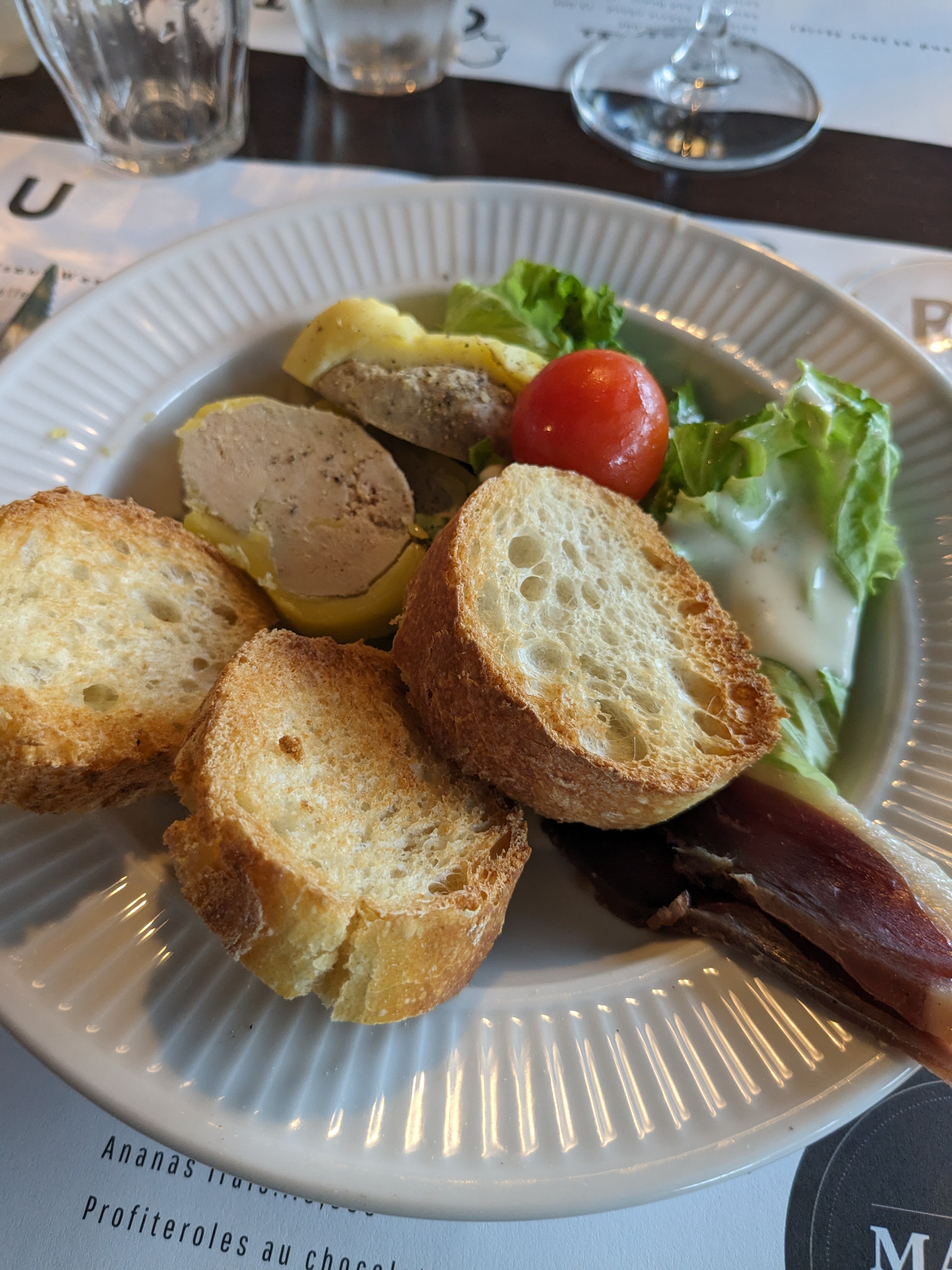 Première expérience réussie. Un joli cadre. Des serveurs efficaces et discret. La salade était très bonne et légère. Le seul tout petit point négatif c'était le cassoulet (photo) qui était un peu trop dans son jus, un peu trop liquide à mon goût, sinon il était très bien assaisonné, grillé sur le dessus et goûteux. La glace aux pruneaux (photo) est appréciable après ce plat. Un bon moment dans un cadre agréable !