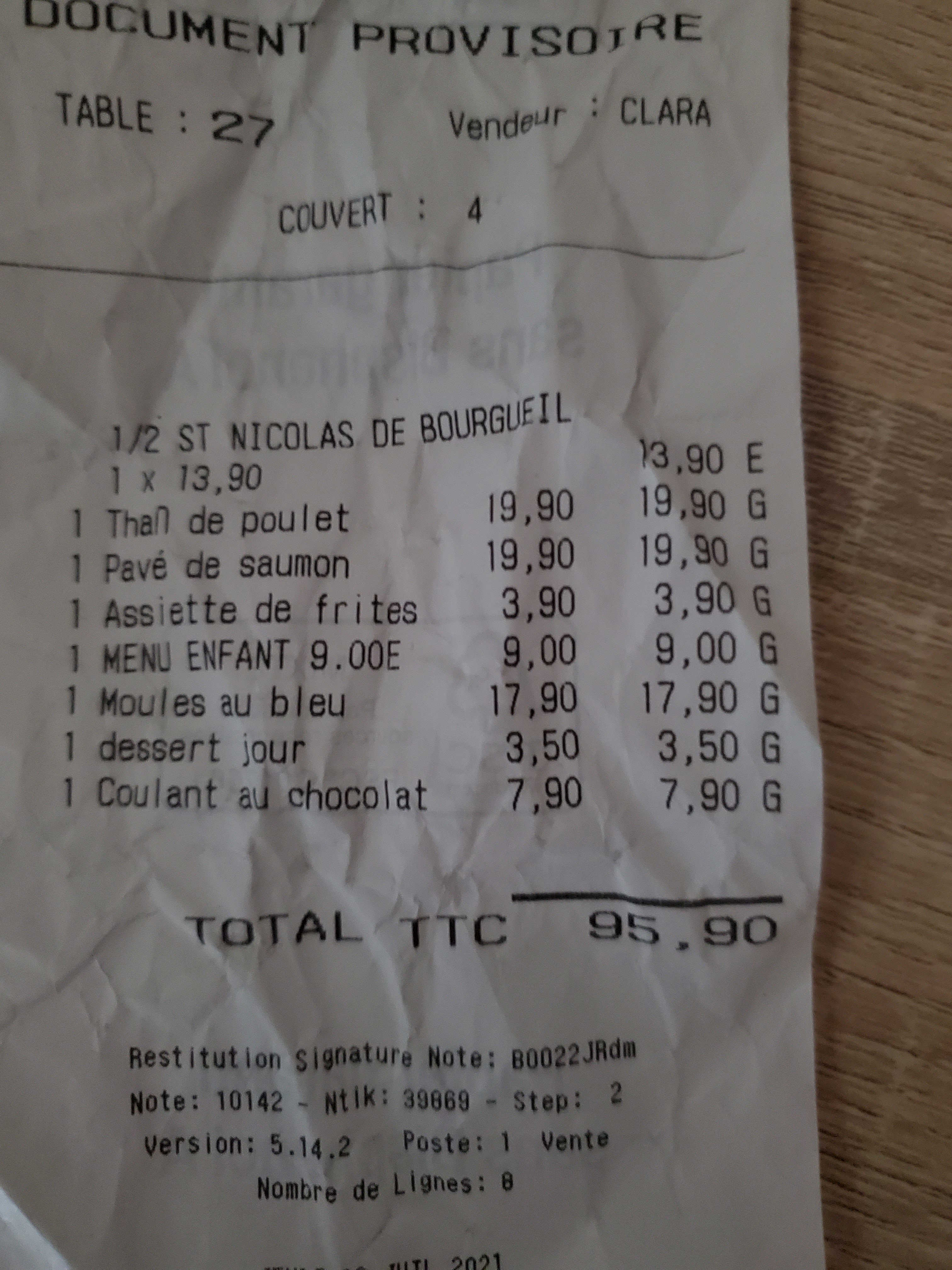 Nous avons dîné en famille à 4, 2 adultes et 2 enfants. Nous avons plats 4 plats différents et tous c'est très bien passé. Maître d'hôtel agréable et très compréhensible avec les enfants qui souhaitaient avec des plats de grands et terrasse ombragé avec vue sur l'allier. Viande, Burger, thon et gambas élégantes et patronne à connaître. La notation de 3,9 n'est pas mérité, je recommande avec un rapport qualité prix plus que correct.