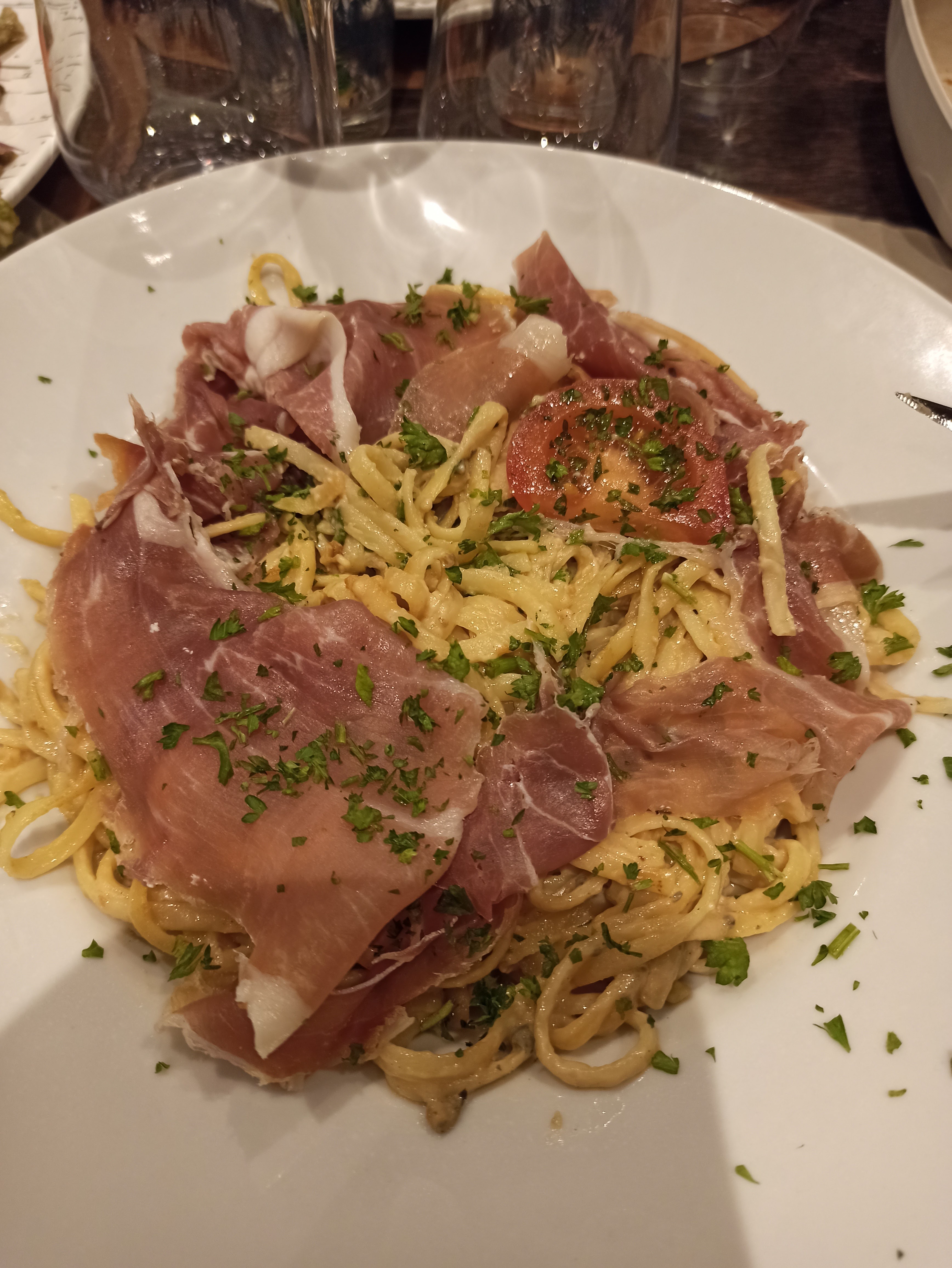 Scandaleux ! La salade et la tomate glacées avec 4 crevettes: 16 €! Pulpe à la meridionale: une poignée de pulpe sans les poivrons (pourtant dans la recette ils faut), le plat rempli avec des frites: 24€!! On va plutôt chez Mc Donald's. On voit bien comment vous avez acheté votre Ferrari garée en face! Si vous aimez les produits italiens, allez plutôt voir la quantité et la soin que l'on trouve au restaurant, vous allez apprendre votre métier! Dommage pour le service, gentil et souriant.