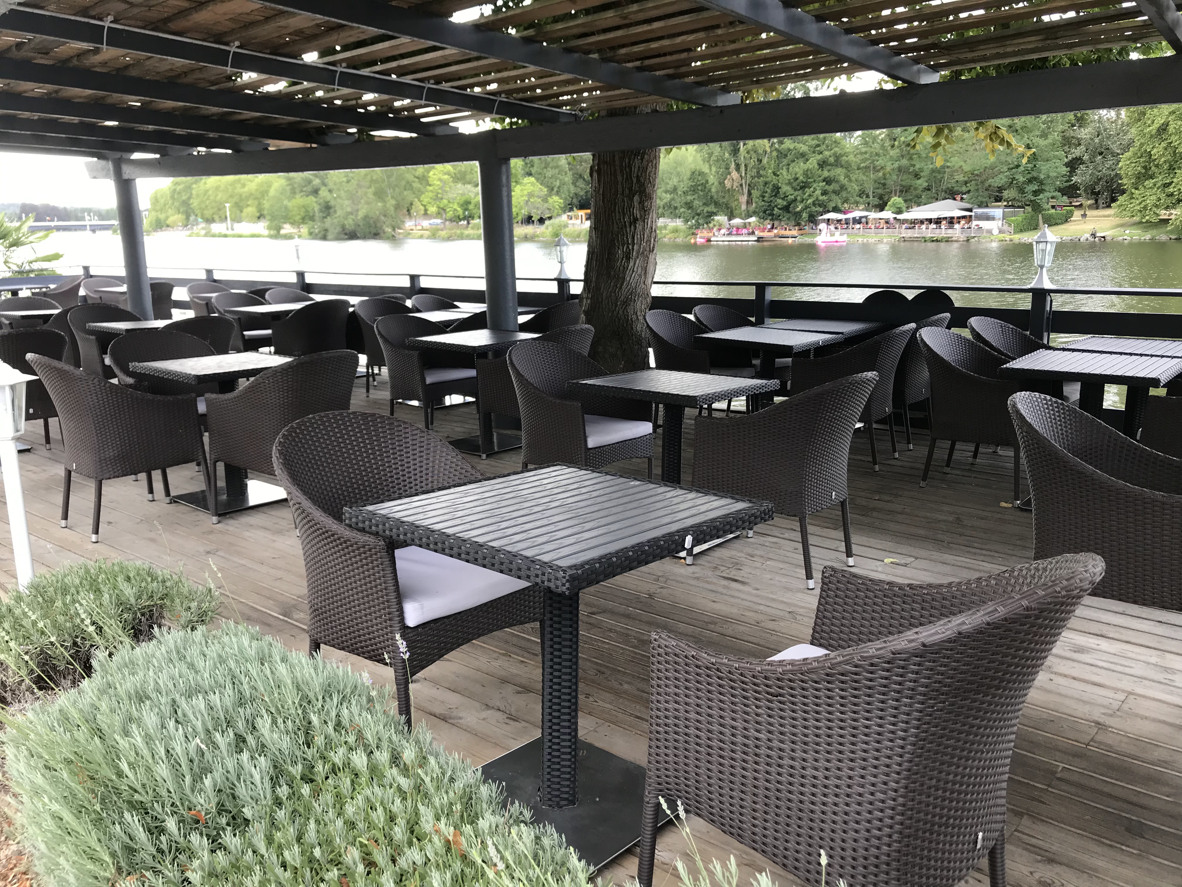 Effectivement la terrasse au bord de l’eau est magnifique mais cela ne fait pas tout ; si on regarde bien la carte, les tarifs me semblent un peu exagérés ; heureusement il y a les formules du midi en semaine ; nous avons choisi celle à 15€ avec entrée-plat-dessert-café, qui est très bien ; mais la cuisine est un peu grasse et pas très originale; à refaire un autre jour...