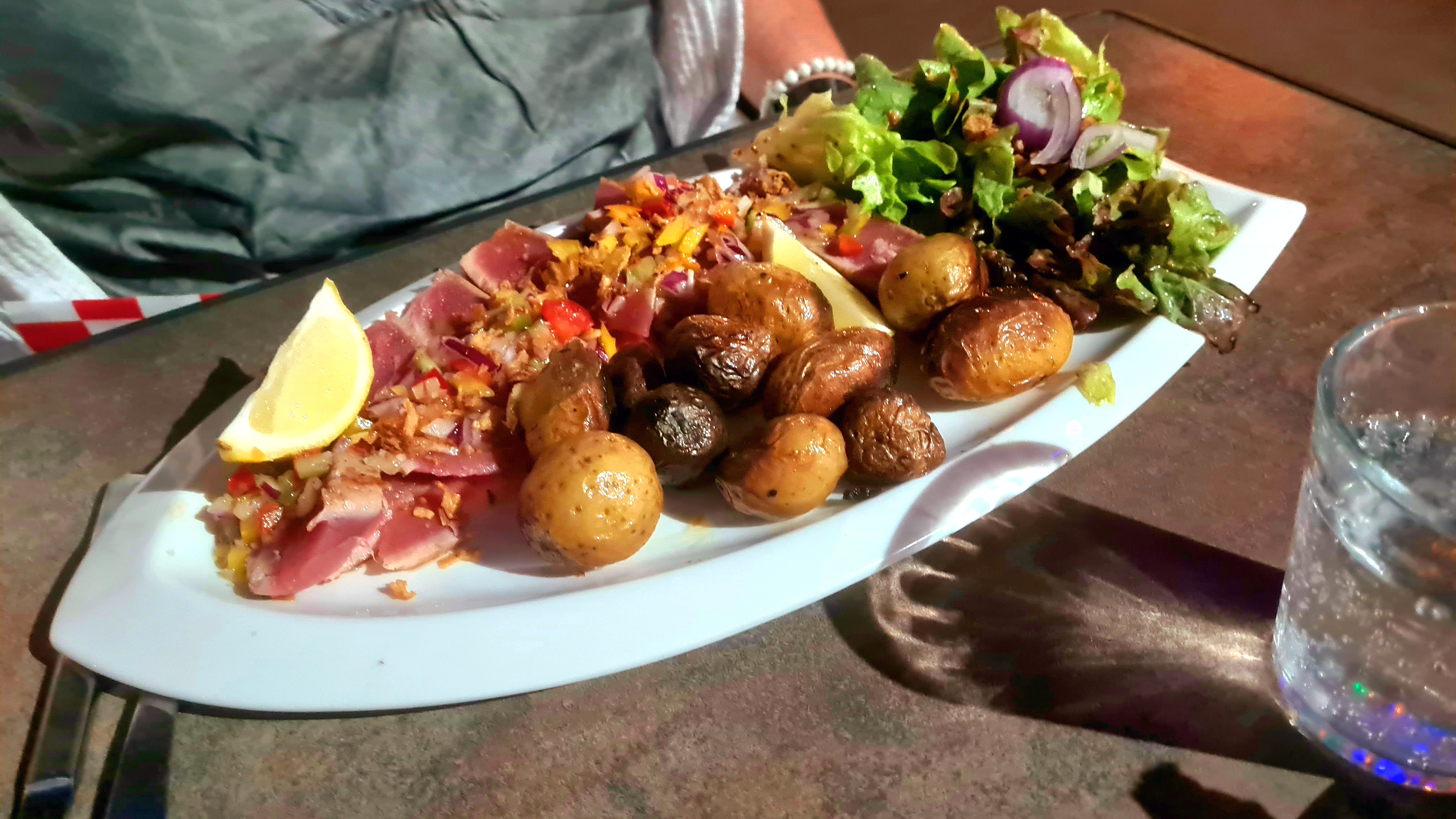 Repas très copieux et excellent. Le repas sur les quais en terrasse est très agréable. Nous avons déjeuné dans un très beau cadre. Petit bémol sur le temps d attente. Mais très bon rapport qualité prix. Je n ai pris en photo que l'entrée. Mais les plats étaient copieux