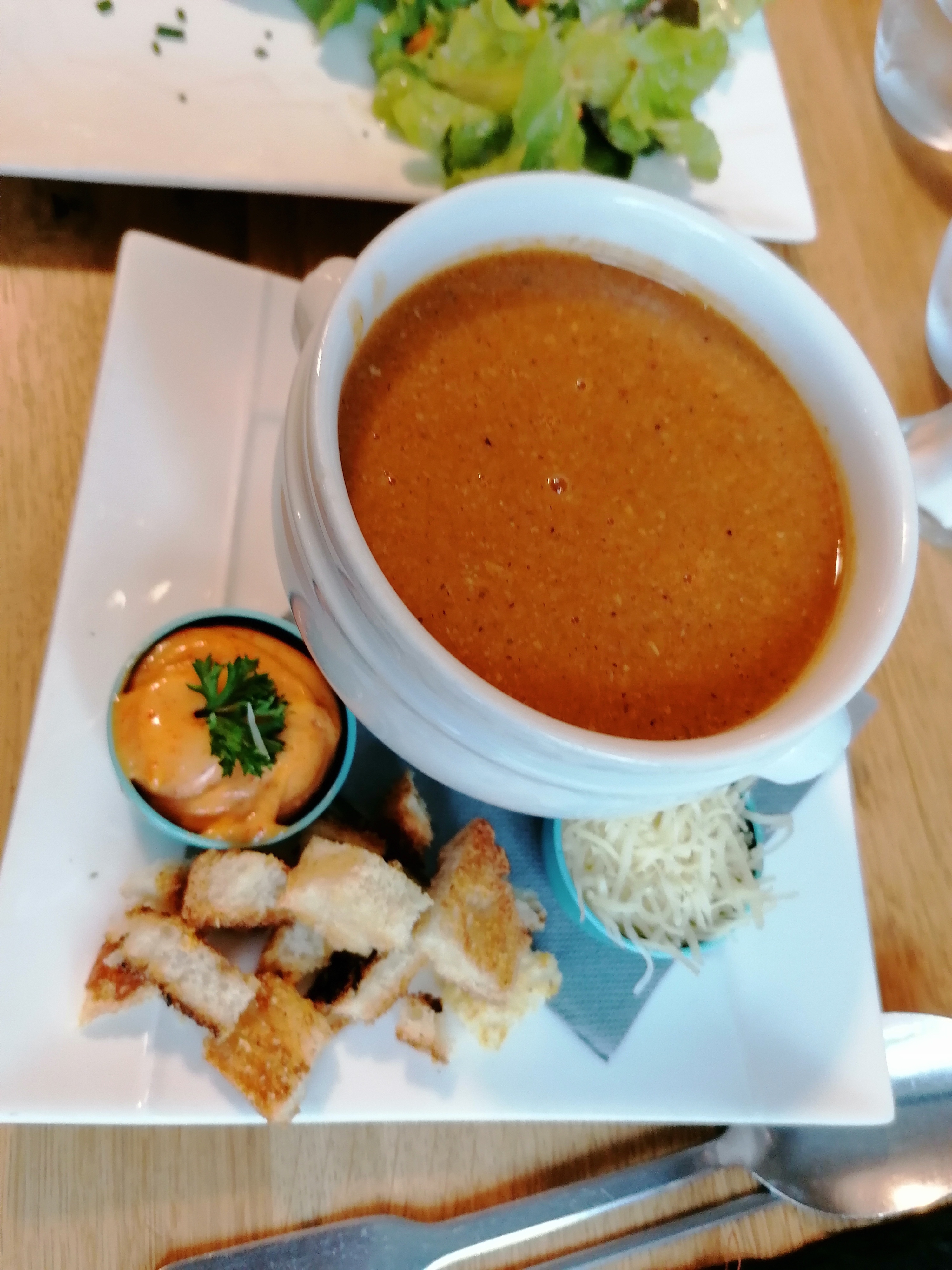 Endroit très chaleureux super bien mangé Soupe de poissons , velouté de crustacés et plateau de fruits de mer et pour terminer café gourmand . Le tout délicieux