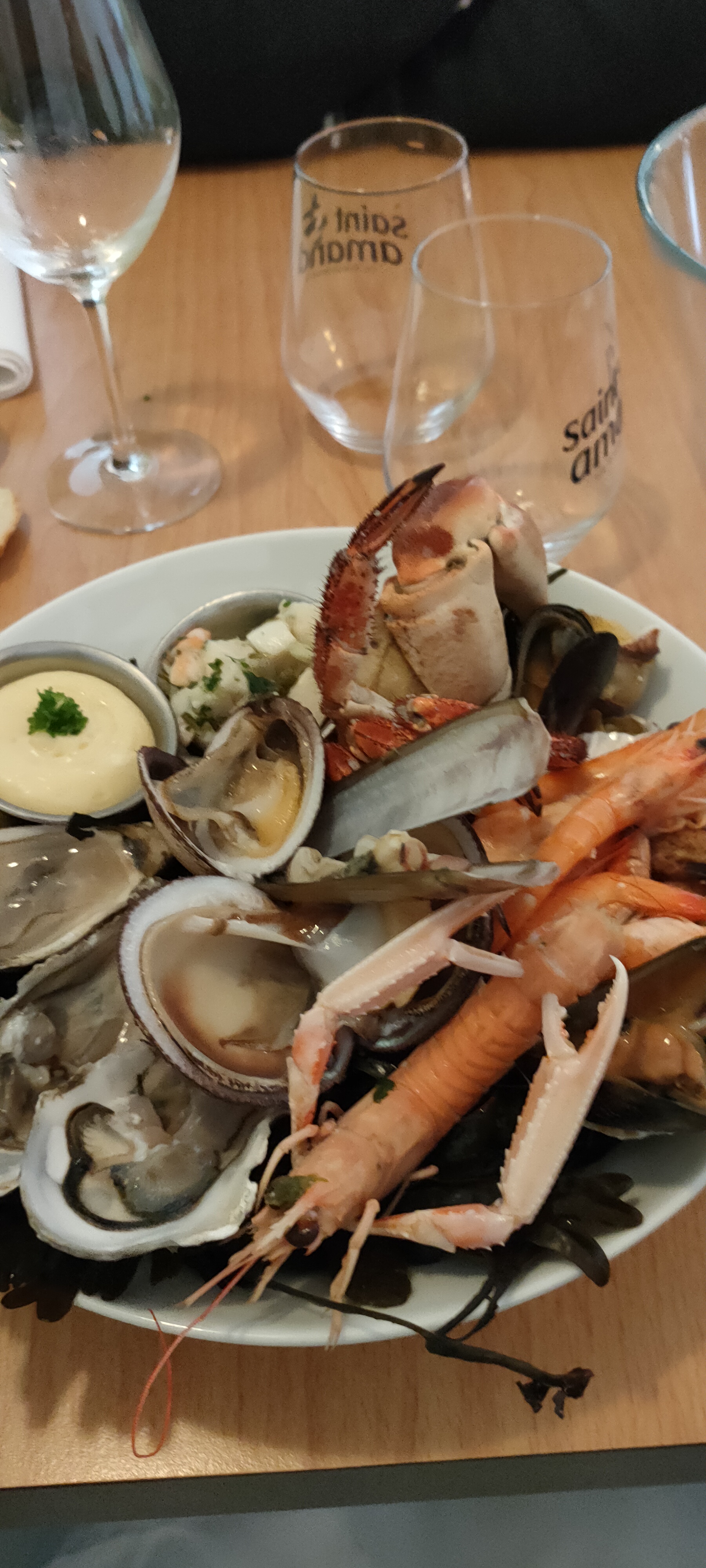 Ça faisait plusieurs années qu'on voulait y retourner... pour les amateurs de fruits de mer ou de crustacés uniquement. Le vin blanc aligoté était remarquable. Puis ballade près de la mer pour faire passer tout ça. Parking pas loin en fait, réservation indispensable vue la notoriété. A quand la troisième fois...