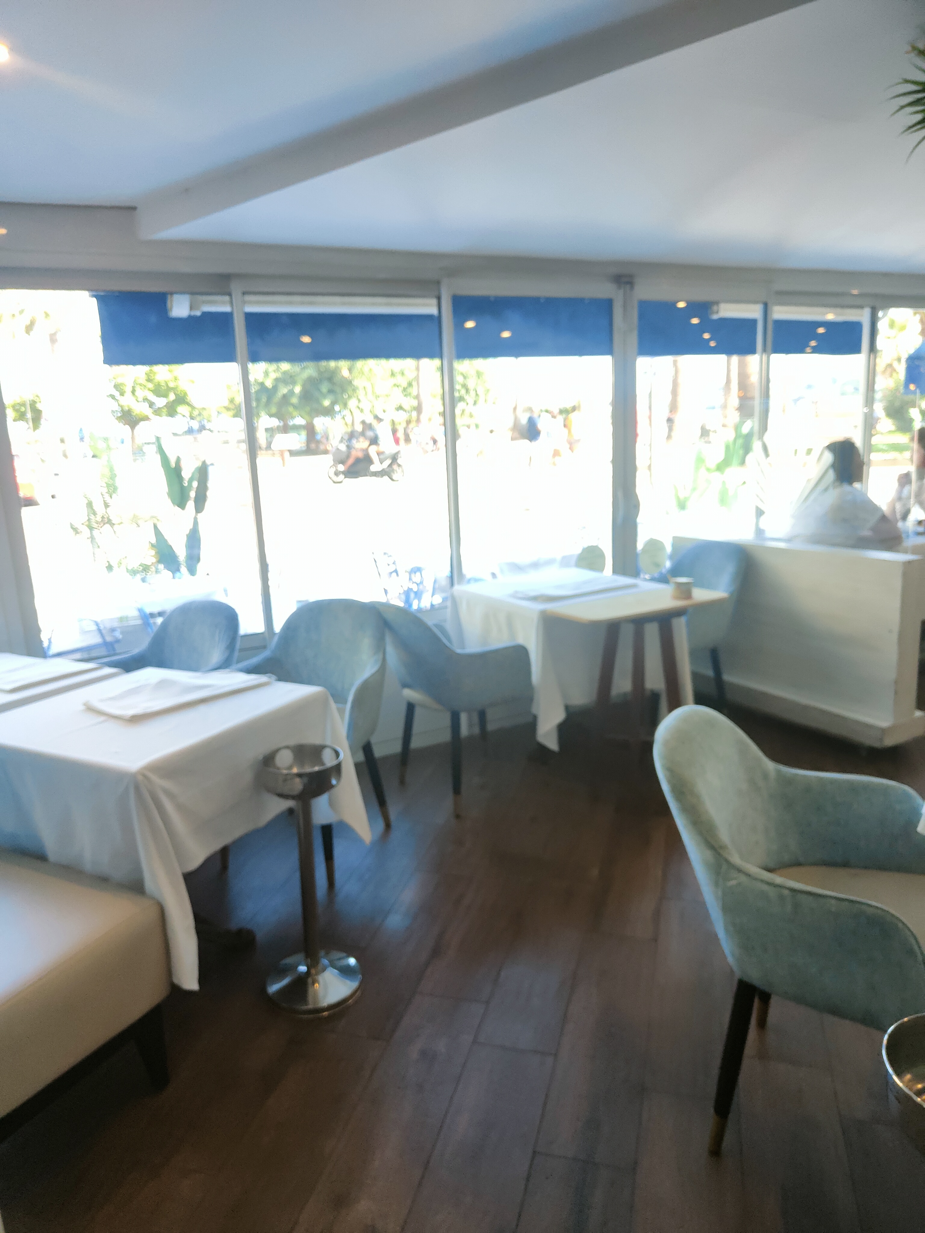 Un très bon accueil et le personnel très agréable. Le restaurant est bien décoré et confortable,très bien placé avec une super vue sur les palmiers et la mer. Nous avons pris le menu du jour de l’an,l’amuse-bouche très bon bien préparé, pour le reste déçu par la présentation des assiettes moyens , le turbot sauvage je pense qu’il a été préparé et laisser un peu trop longtemps sous le chauffe plat il est arrivé très sec et arrosé par la sauce au champagne avant de nous le servir ,et pour la salade de fruits comme dessert je ne pense pas que c’était une salade de fruits faites maison. Nous avons regretté de ne pas avoir pris le plateau fruits de mer, car il avait l’air vraiment très bien préparé est très bon.