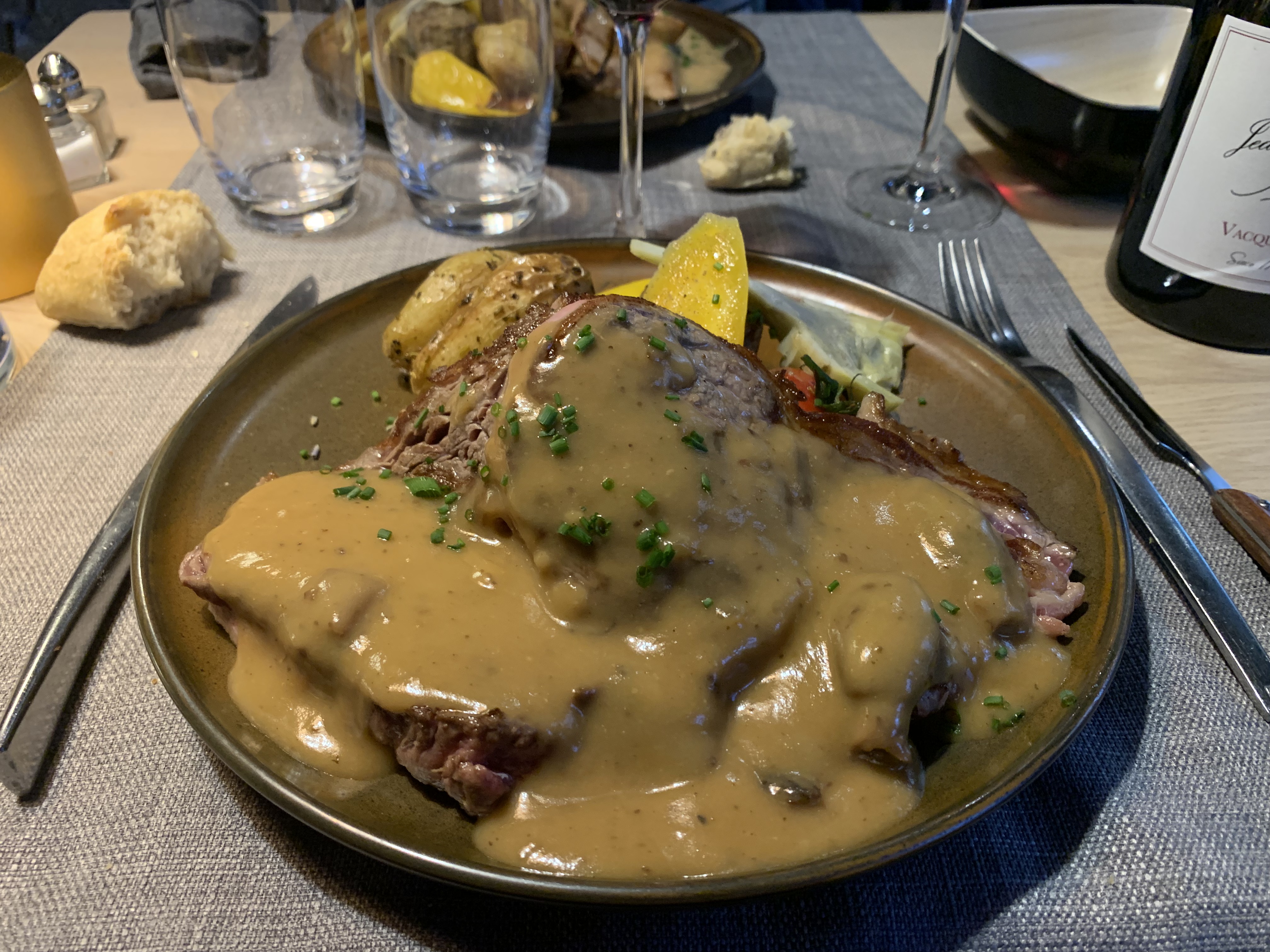 Un très beau menu du jour, copieux et bon. Moi j'ai pris une côte de bœuf, a tomber par terre !