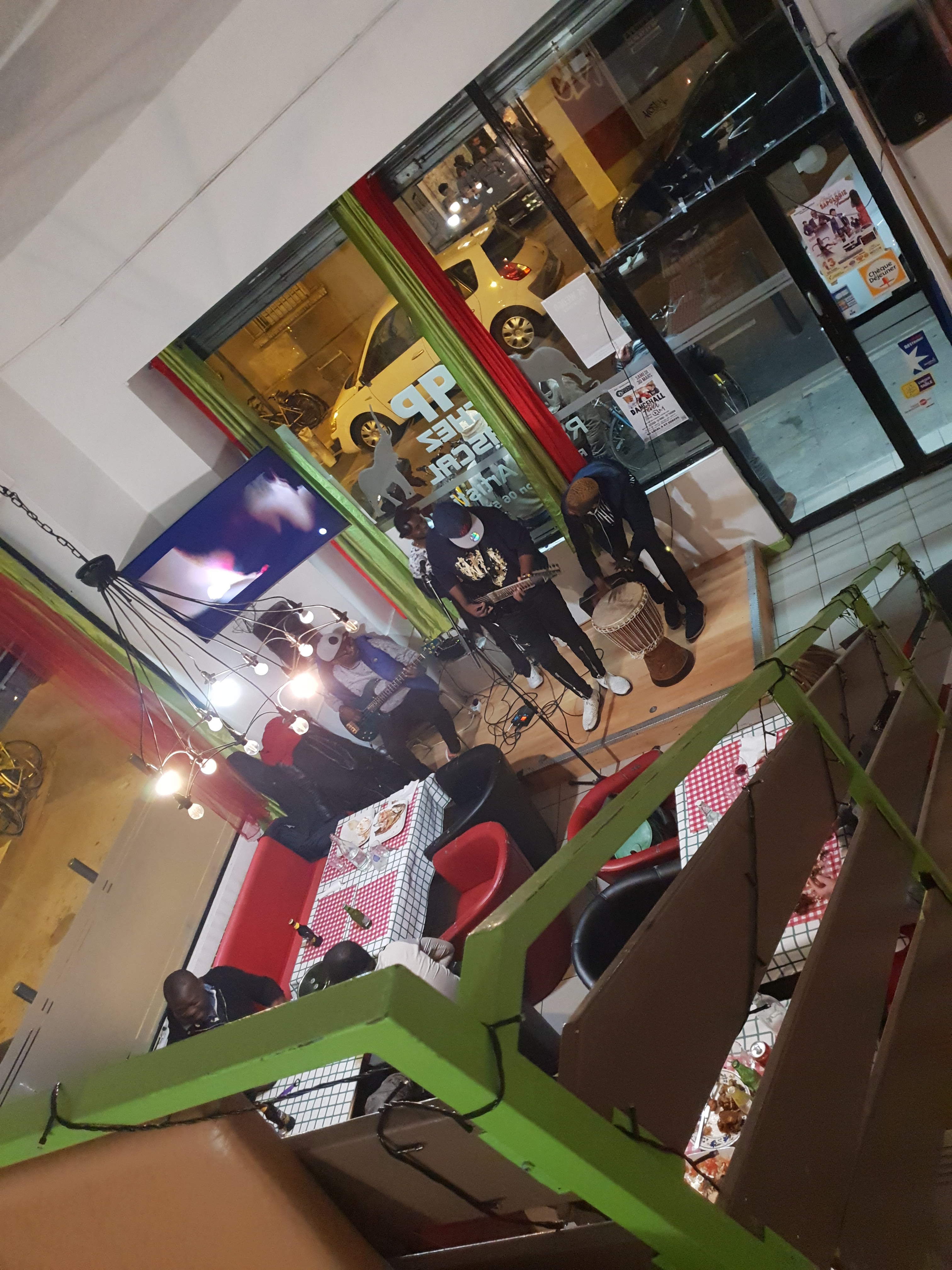 Bonne cuisine africaine, des groupes de musique variés les week-end, ambiance afro décontractée