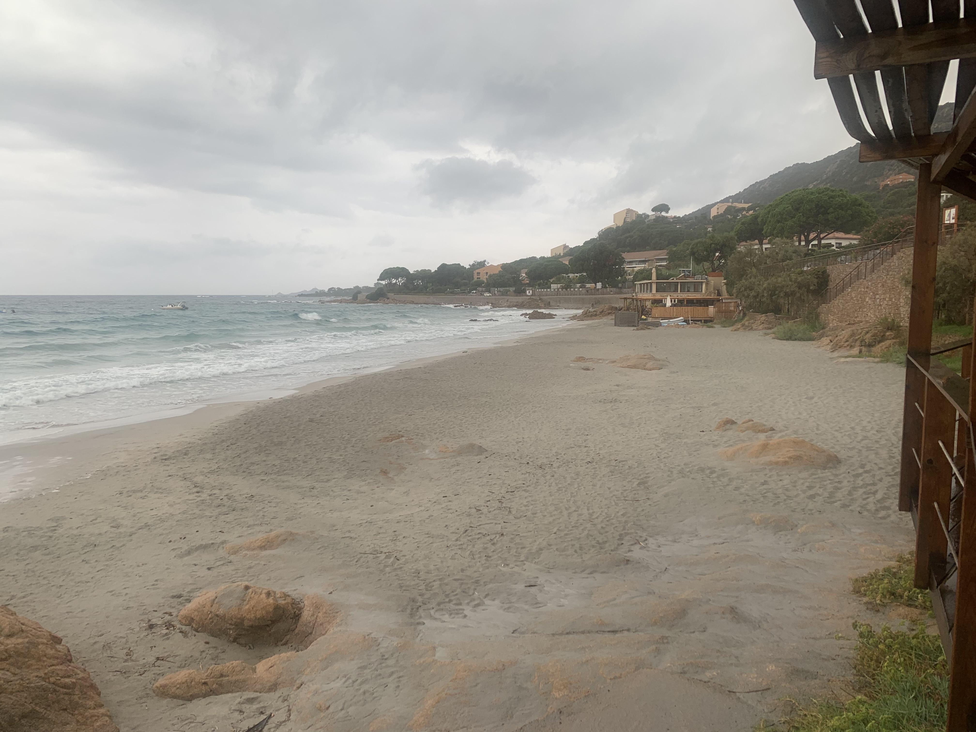 Superbe vue sur les îles sanguinaires. Très belle terrasse dont nous n avons pu profiter pour cause de tempête. Mais l intérieur est très agréable avec ses grandes ouverture sur la mer. Bon menu avec excellent rapport qualité prix. À recommander.