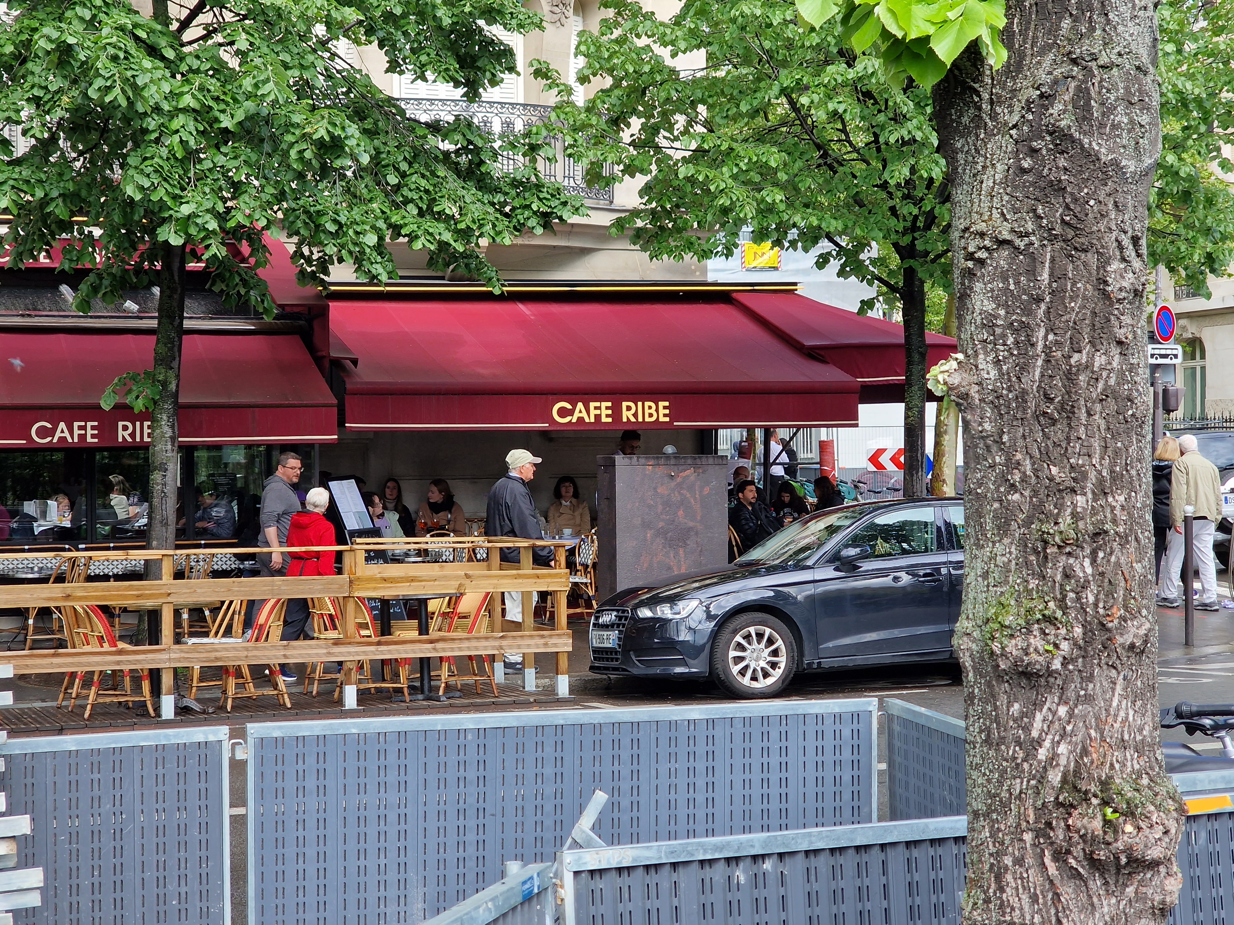 Ma première fois à Paris, chaleur insoutenable, je me dis qu'un café et qu'une carafe d'eau ne seraient pas de refus ! Nous décidons de nous rendre au café Ribe ! Quelle excellente idée 🤩 Un serveur irascible nous reçoit et nous lui demandons 2 café à 4€ l'unité (les prix ne sont pas un souci, nous savons où nous sommes) ainsi qu'une carafe d'eau. Deux café et deux verres d'eau nous arrivent et lorsque je redemande une carafe d'eau, on me dit non puis un second non pour un verre d'eau : ici on ne sert pas d'eau en carafe, le verre d'eau avec le café était une exception. Je trouve ça délirant, d'autant que j'ai des problèmes de santé... d'autant plus à 4€ le café 😉