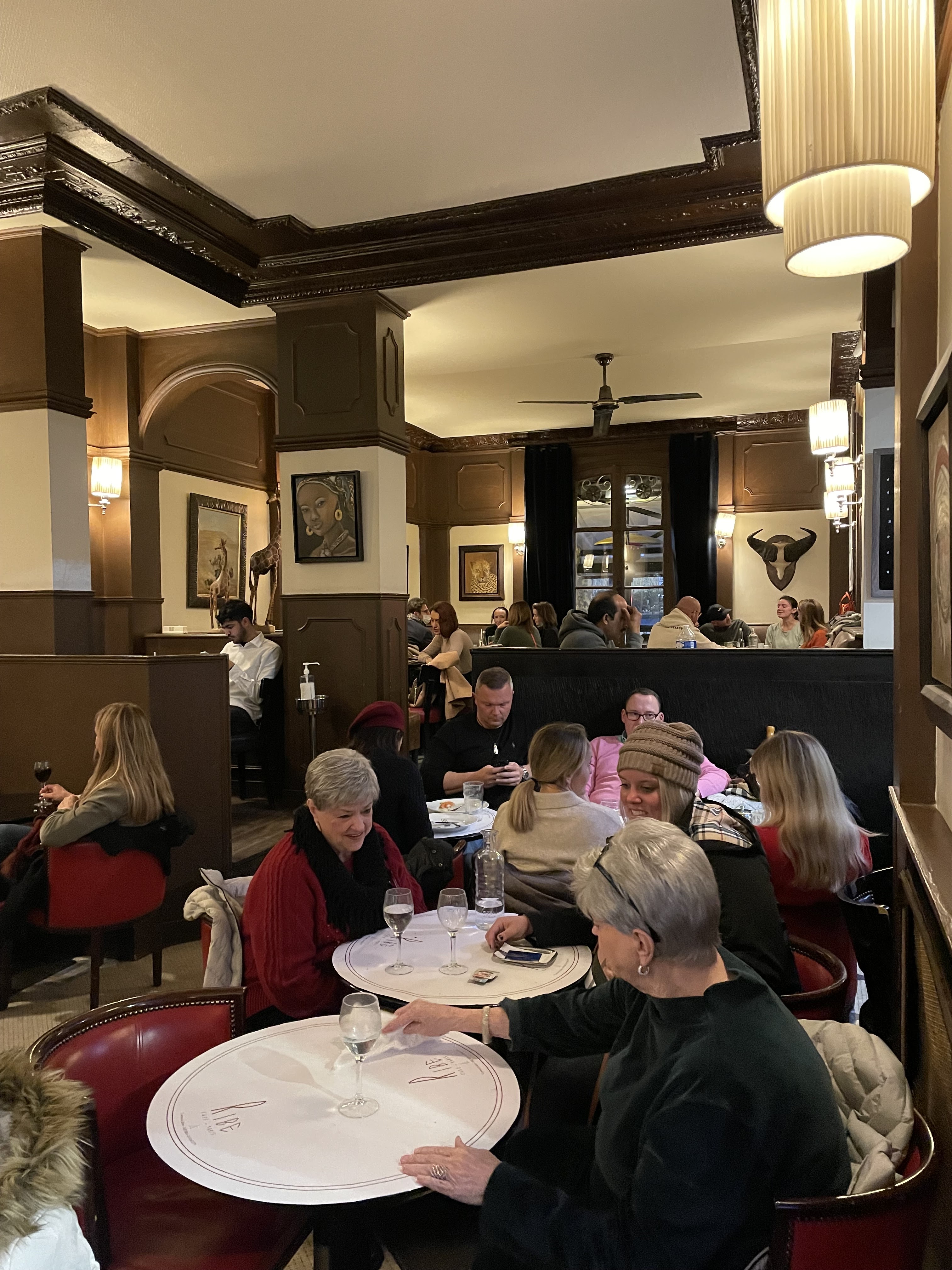 Les serveurs étaient extrêmement sympathiques et accueillants et recommandaient d'excellents plats. Nous avons eu du champagne, des escargots, un plat de pâtes et le plat de steak Tigre. Puis la crème brûlée et le gâteau au chocolat. Je recommanderais tout cela à tout le monde.