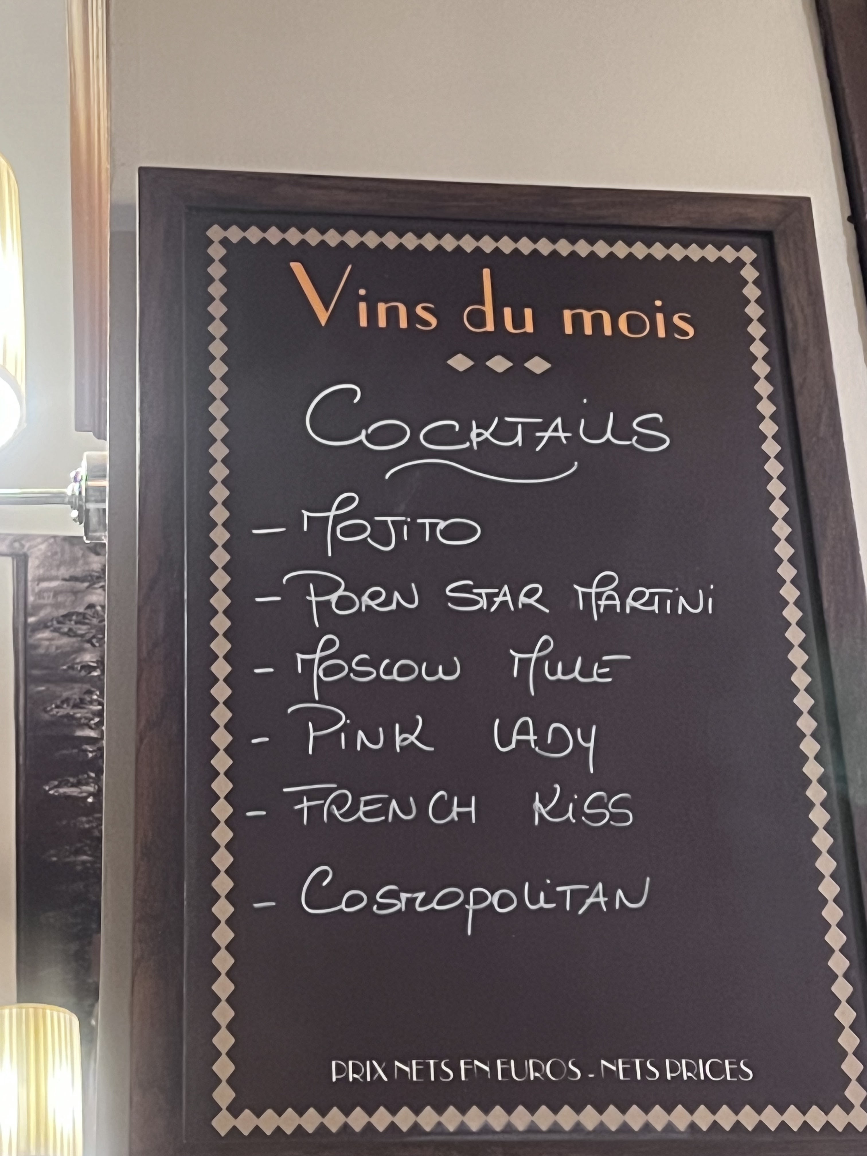 Cocktails bons mais pas exceptionnels, plateau fromages/charcuteries très bon. Un 5* pour Carole, merci pour votre gentillesse et votre service exceptionnel, merci d’avoir ensoleillé notre première journée à Paris.