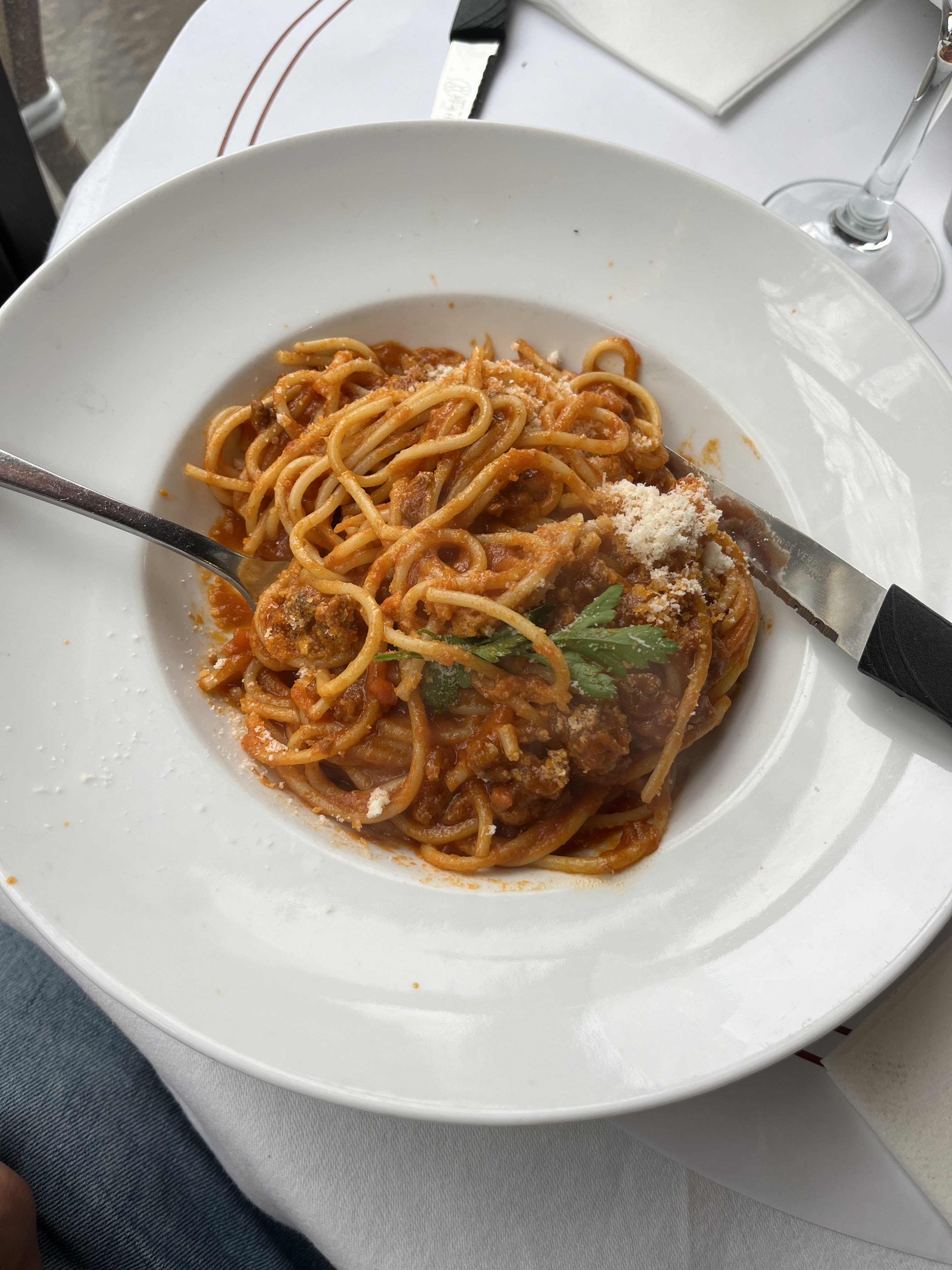 Nous avons passé un si bon repas et avons beaucoup apprécié le service. Le (je suppose) propriétaire et serveur se sont occupés du fait que notre table était un peu bancale alors qu'ils nous asseyaient et s'assuraient qu'elle était solide. Aperol spritz était délicieux et nous avons eu les escargots, le beouf bourgignon et les spaghettis à la bolognaise. La nourriture était brûlante, avait un goût incroyable et notre serveur n'aurait pas pu être plus gentil. Peut-être un peu cher, mais honnêtement, étant donné sa proximité avec la Tour Eiffel, il faut s'y attendre. Je le recommanderais sans hésiter et j'y retournerais certainement moi-même.