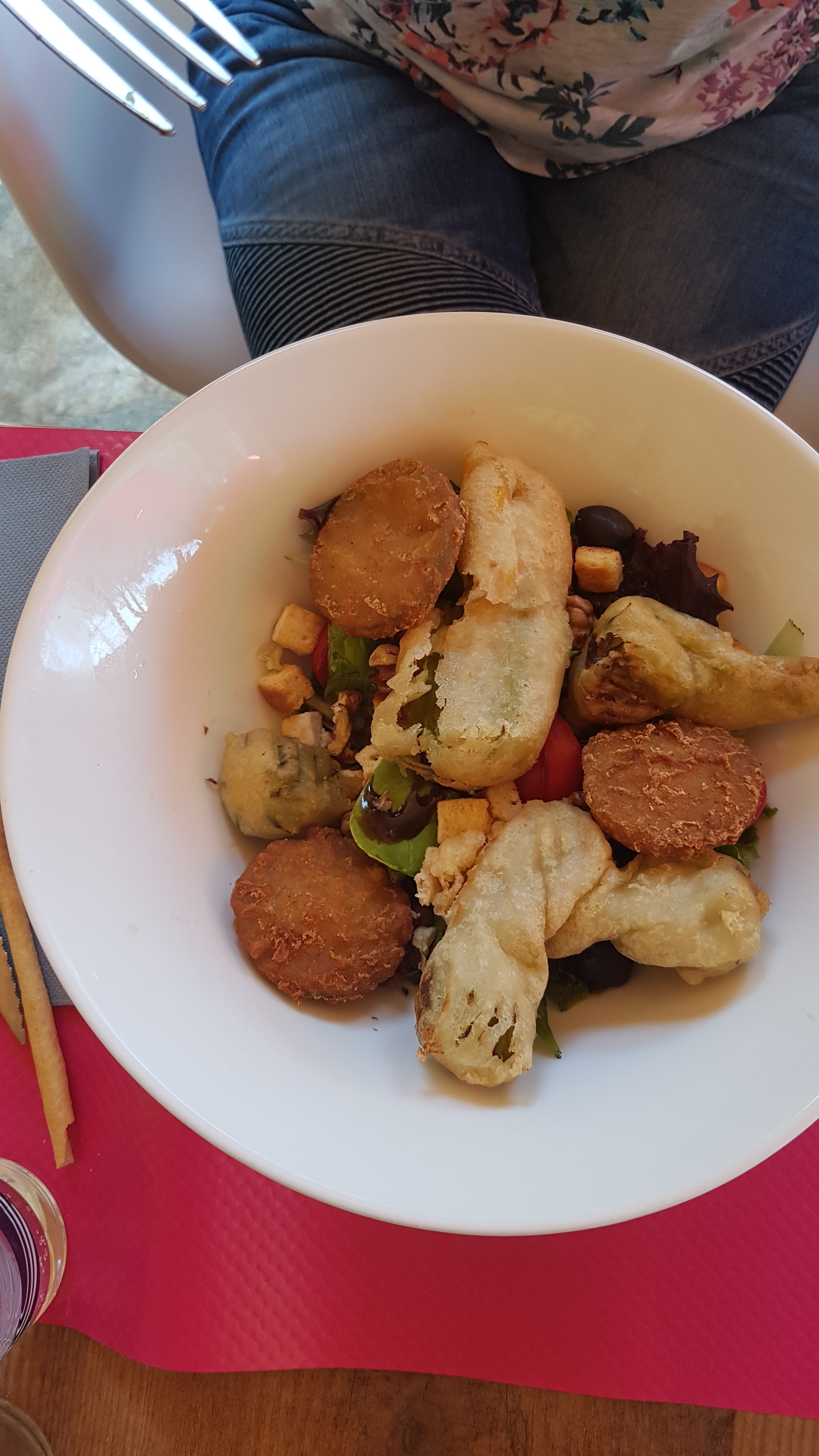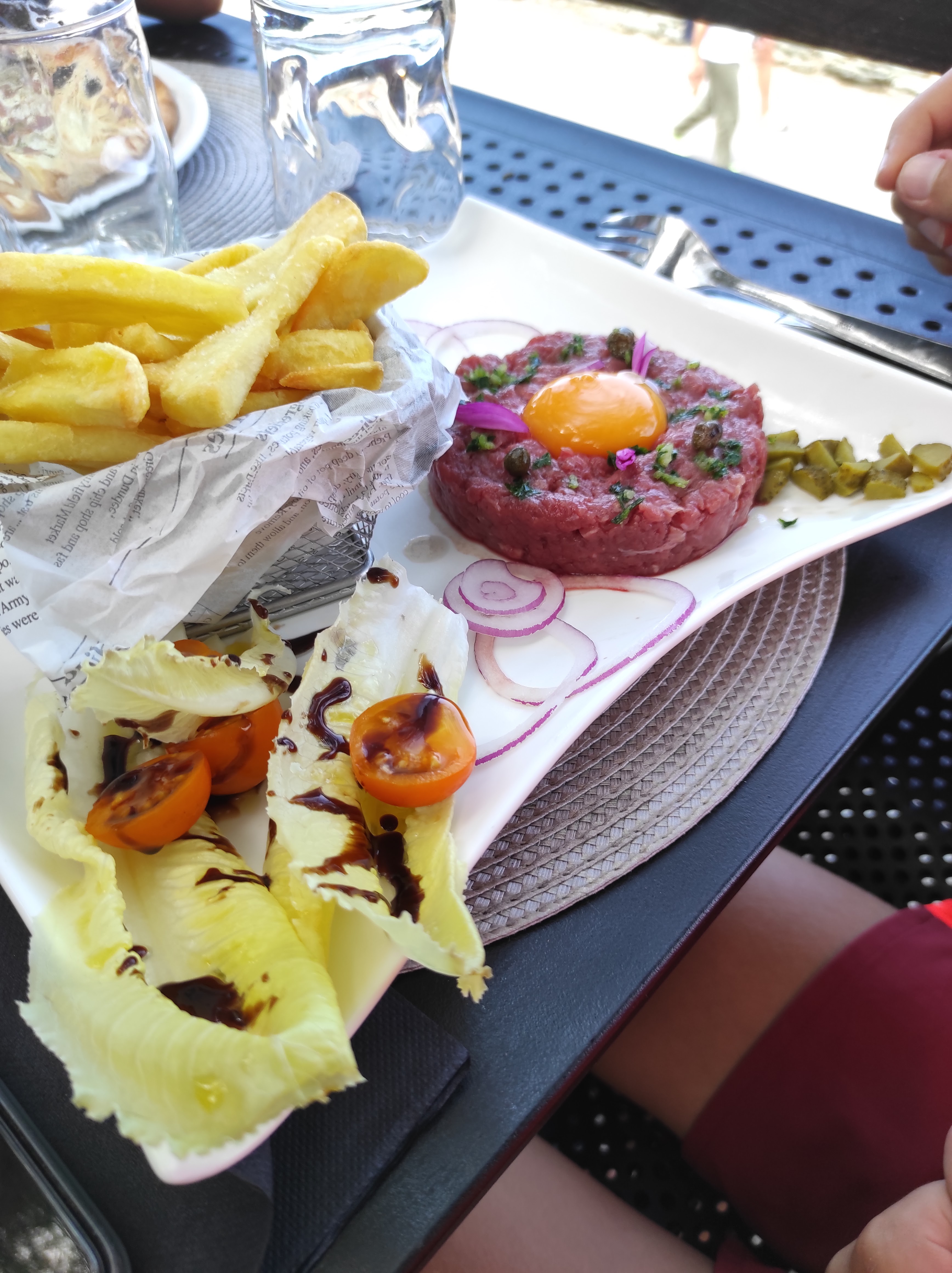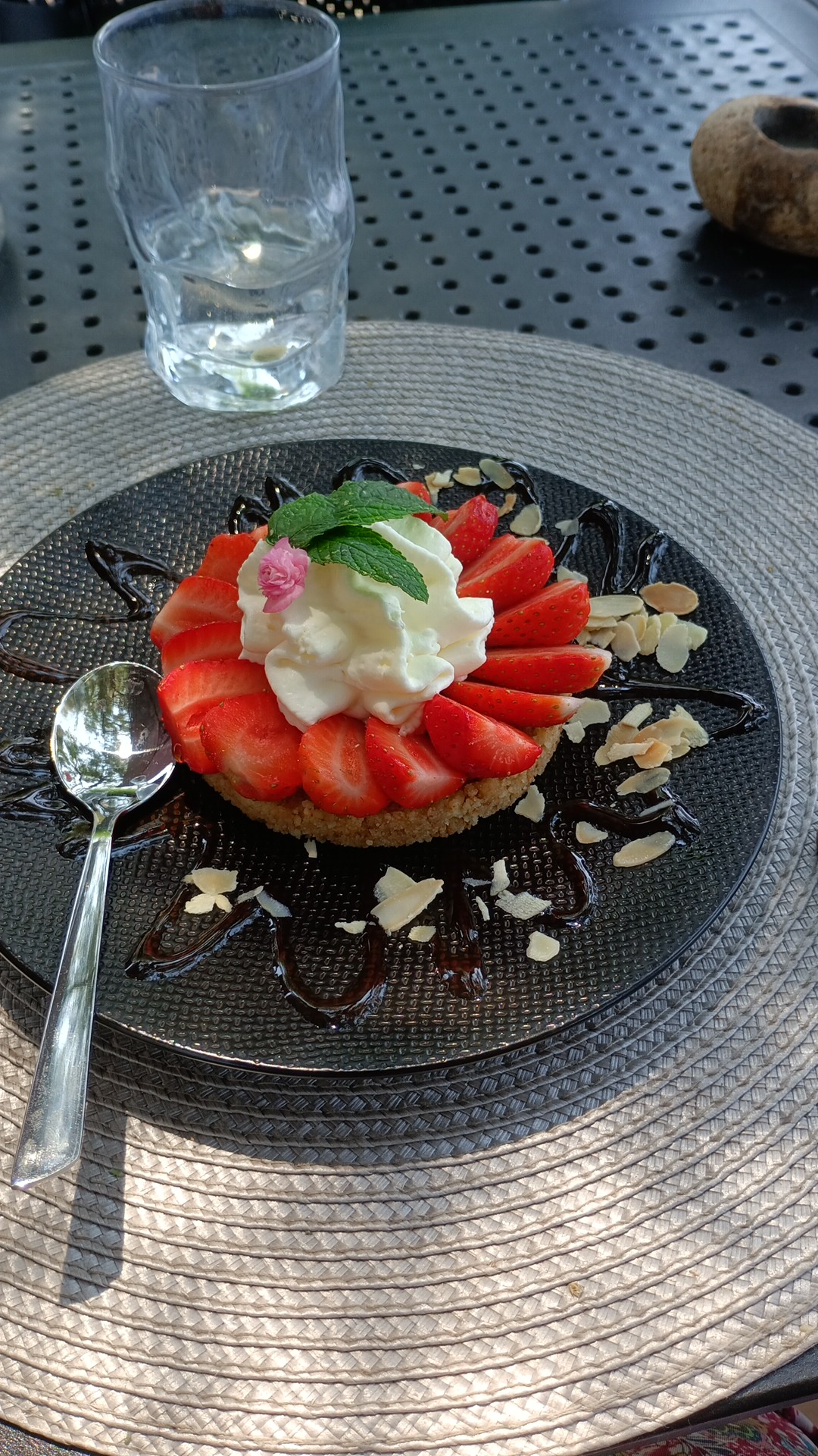 Allez déguster une liche avec des brochettes de légumes et un dessert surprise dont vous aurez à découvrir la composition... La Patronne, cuisinière, et sa fille qui l'assiste rempliront vos assiettes d'une bonne humeur festive qui donne vraiment envie d'y revenir ! Cécile et Patrick 2juillet23