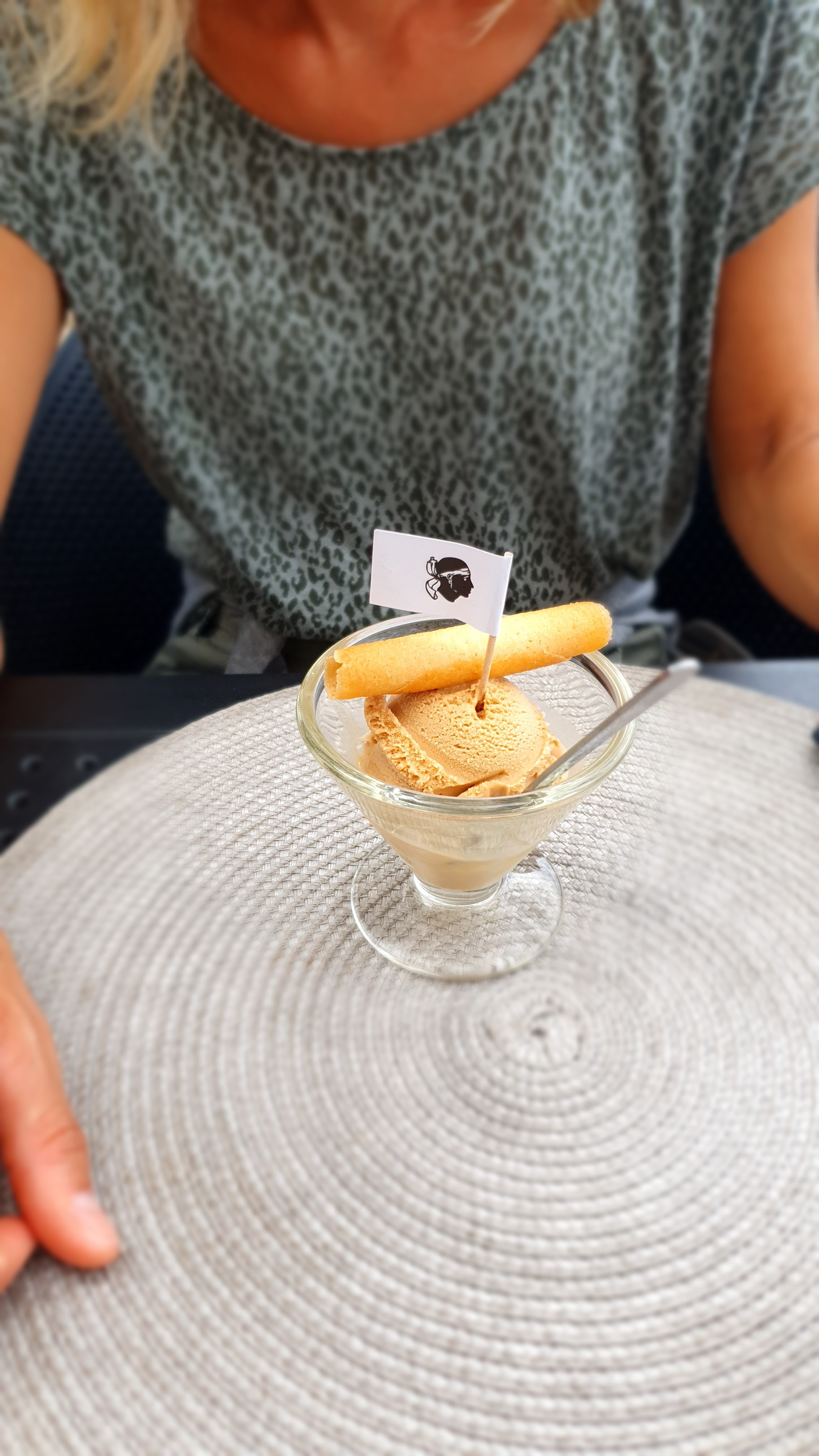 Si vous allez au port de Centuri il faut passer chez Sandrine pour gouter son dessert pastizziu. Ambiace familiale sympathique.