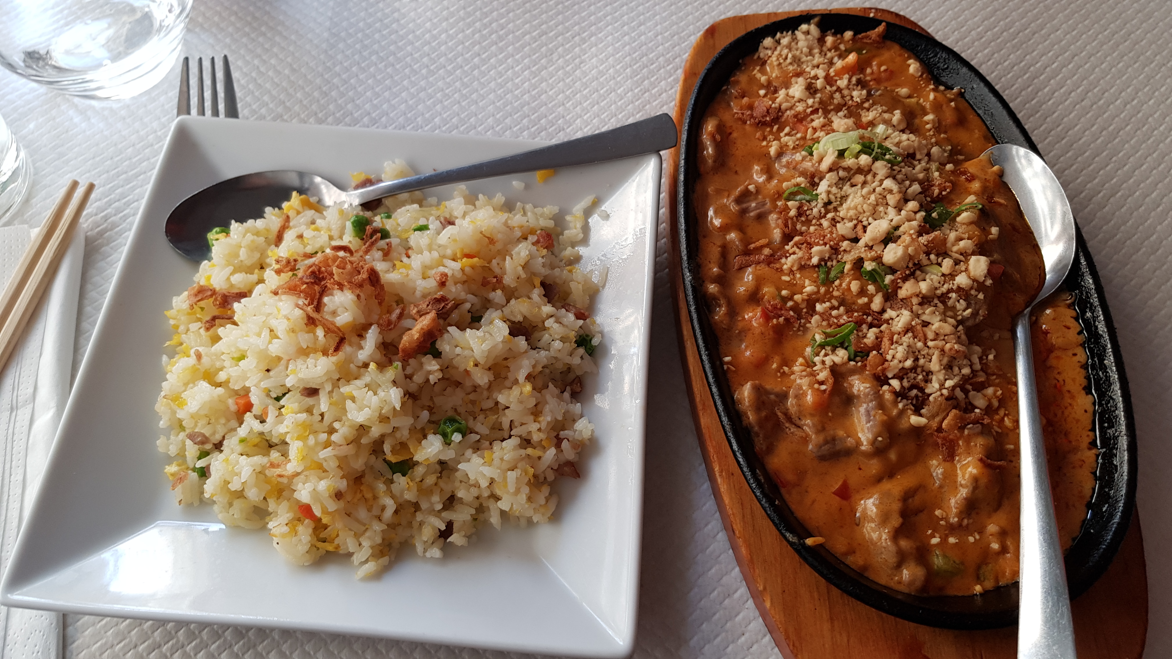 Le dimanche midi, pour trois, il est mieux de réserver. Nous avons fait le choix d'aller sur un table pour deux, à trois :) Le service est relativement rapide et la patronne est sympa. Le repas est très bon et suffisamment copieux. Les points négatifs : pas de menu du midi ou du soir, tout est à la carte. Lorsque nous commandons un plat principal avec du riz, nous avons pas de bols permettant de mélanger les deux.