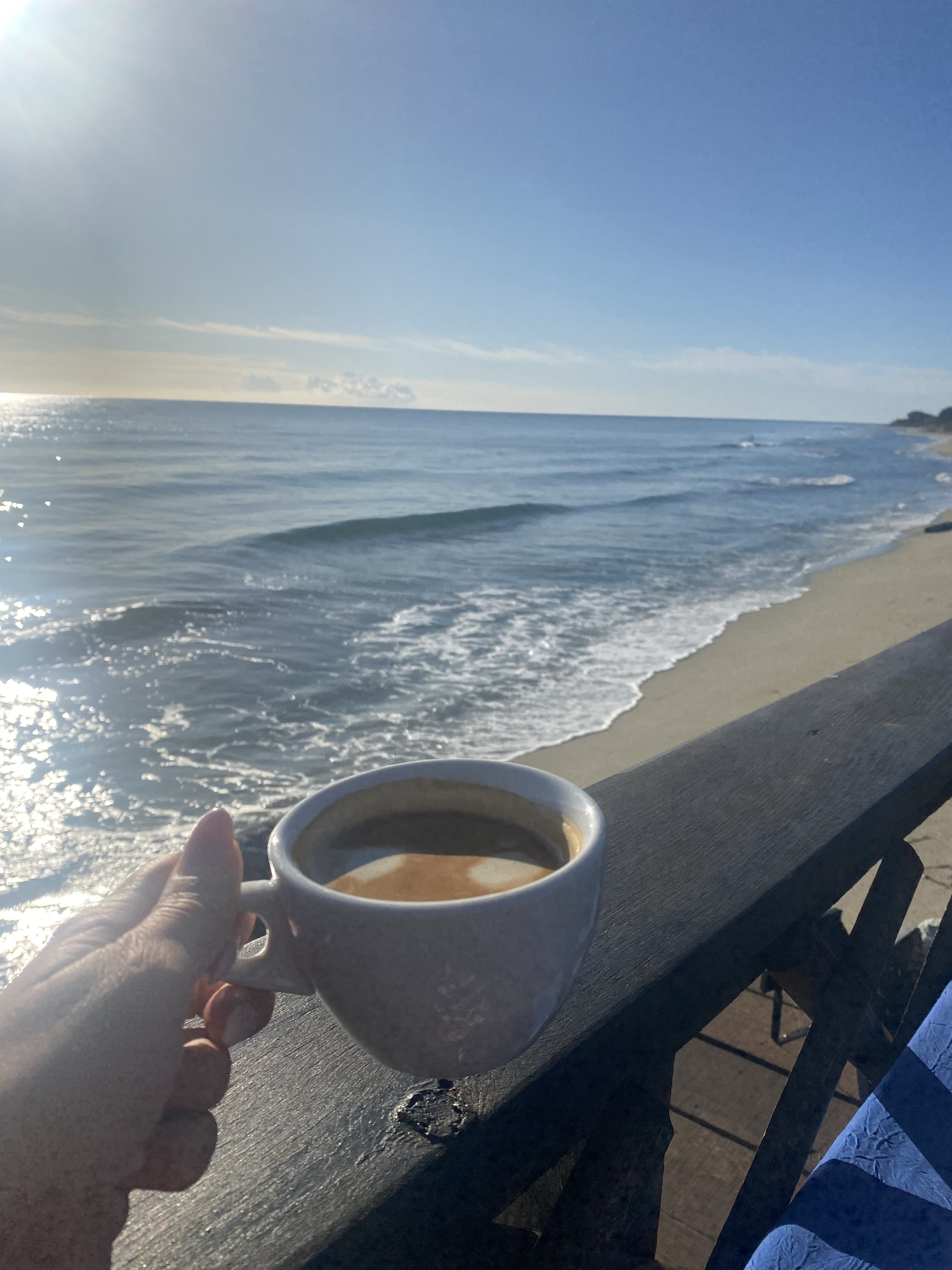 Arrêt petit déjeuner en sortant du bateau sur la route vers Porto Vecchio. Ce fut un très heureux hasard que d'avoir choisi chez Thérésa ! Très gentil accueil, délicieux petit déjeuner avec pain frais, croissant et confiture maison dans un lieu simple et authentique sur une plage paisible. Un endroit qui mérite qu'on s'y arrête !