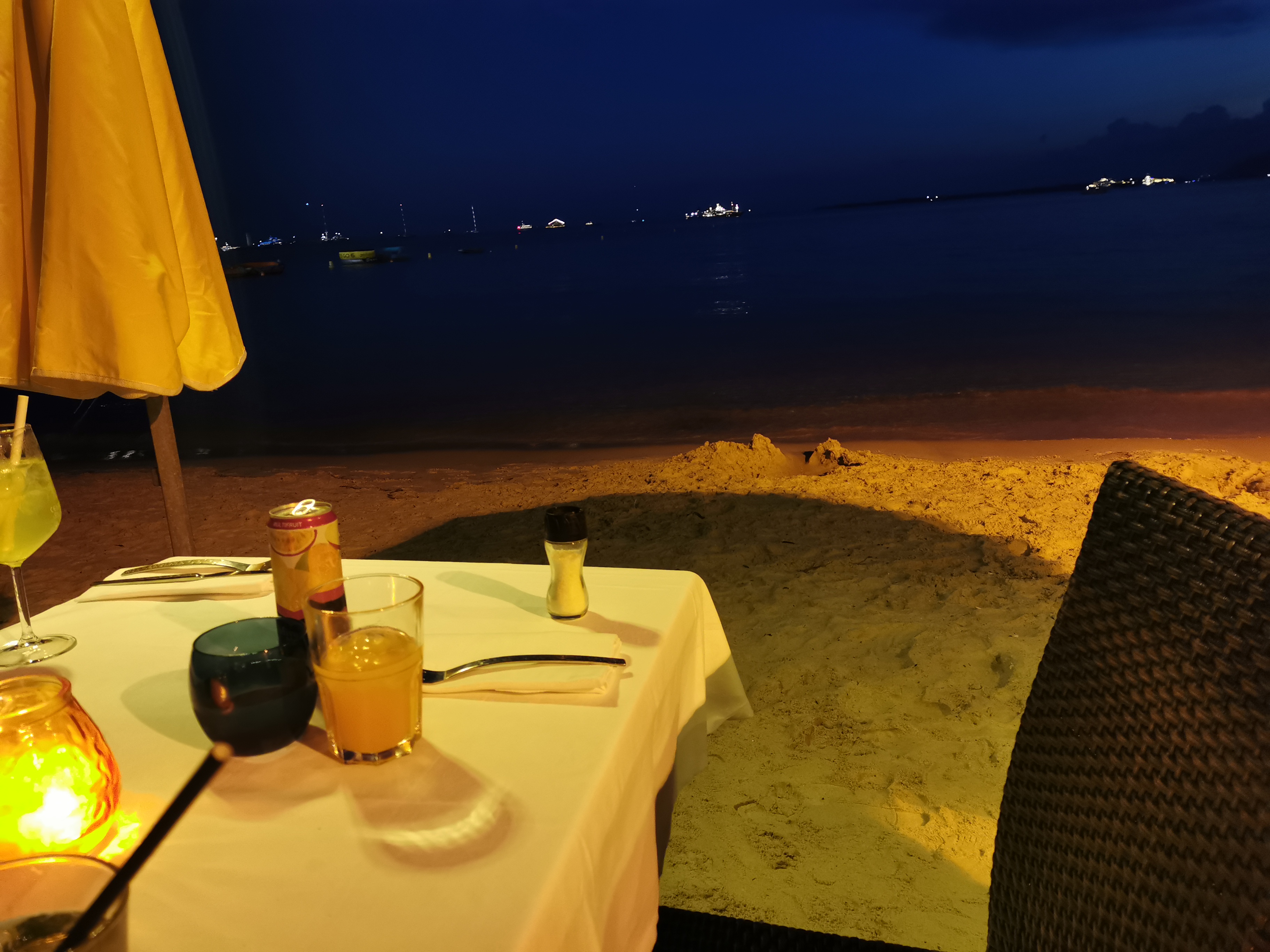 Excellente soirée entre amis dans ce petit coin avec les tables les pieds dans le sable personnel sympa et bon coup de fourchette