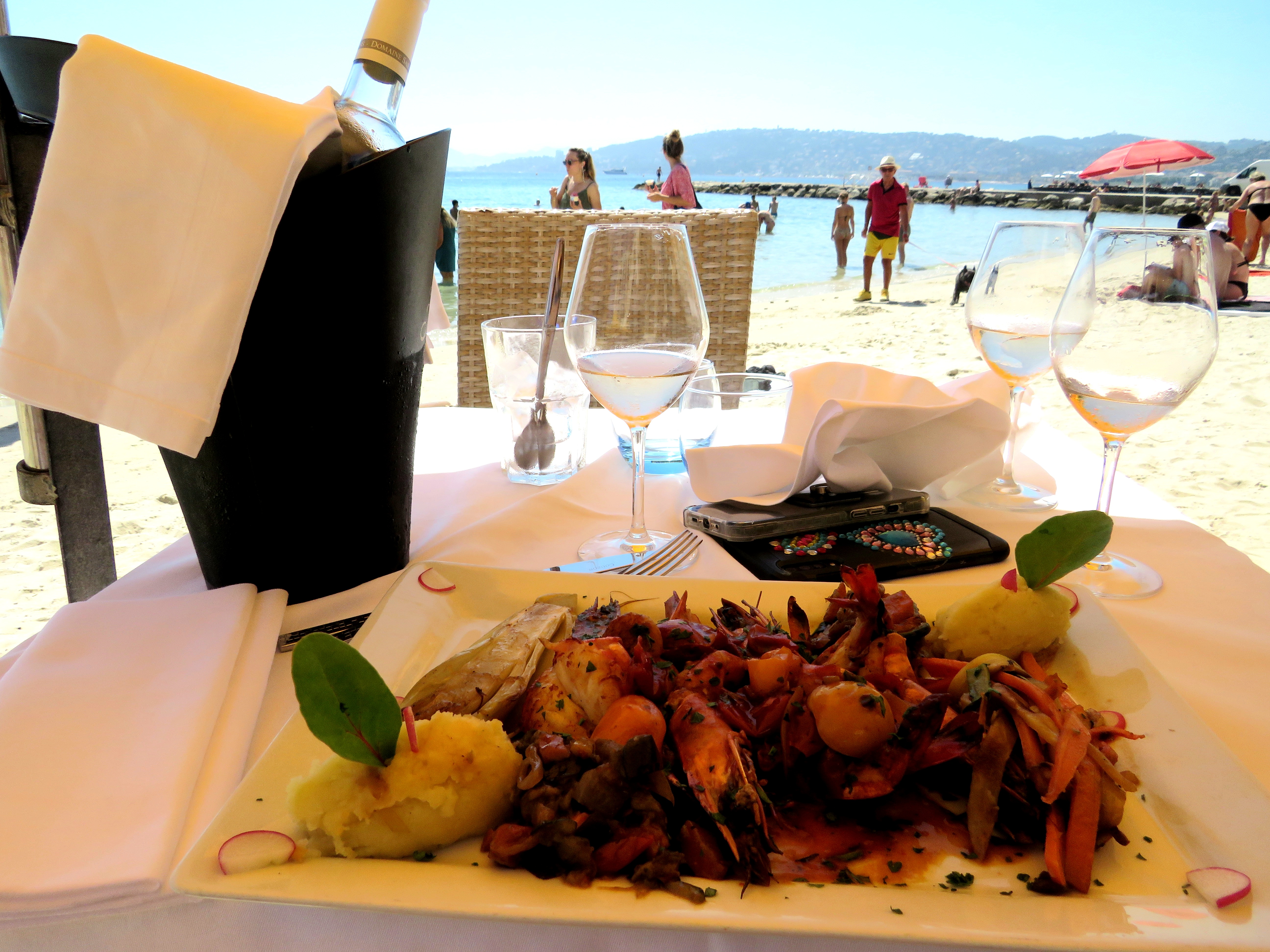 Service impeccable, plats délicieux dégustés les pieds dans l'eau face à l'île Sainte Marguerite. Je recommande !