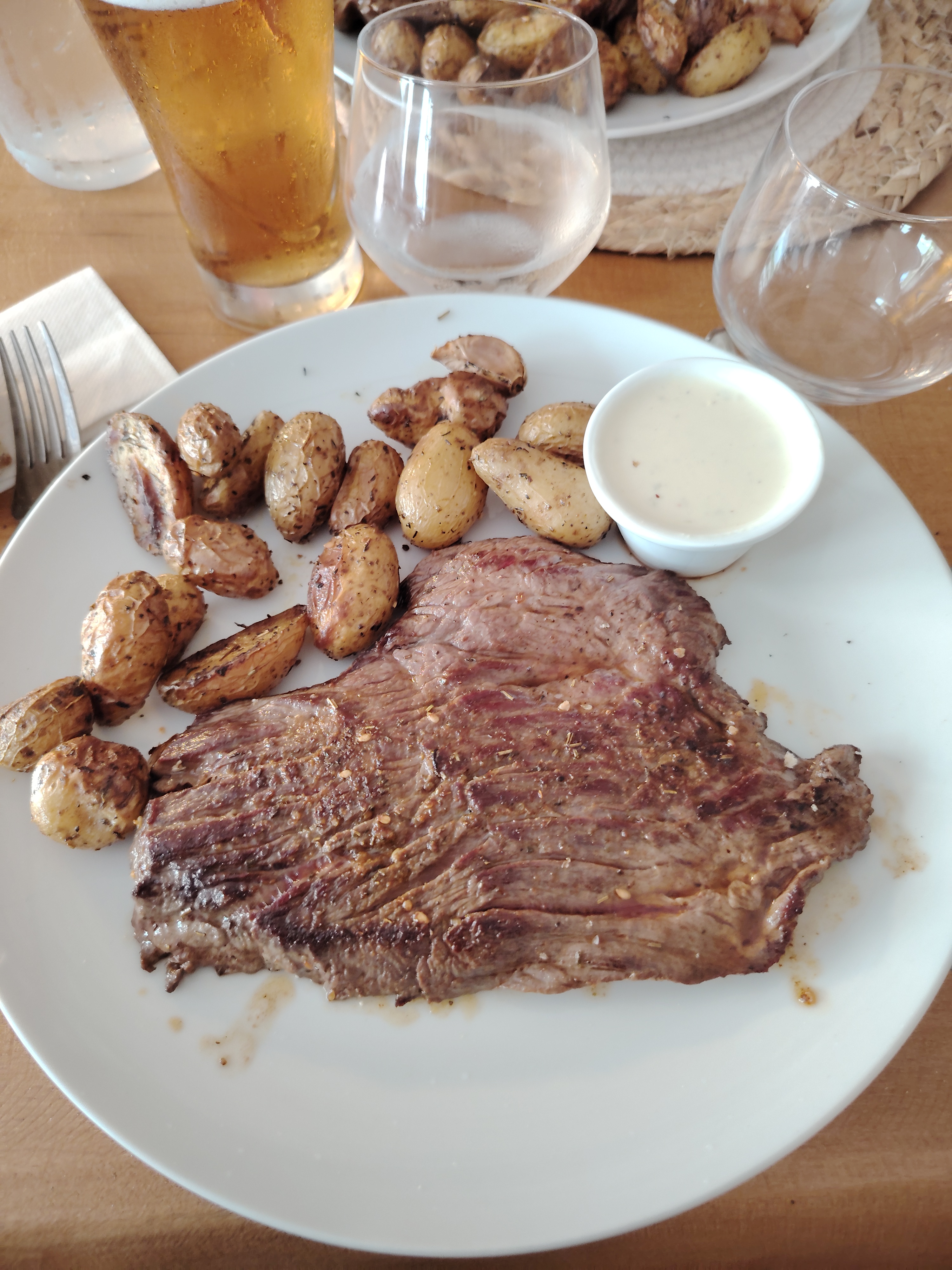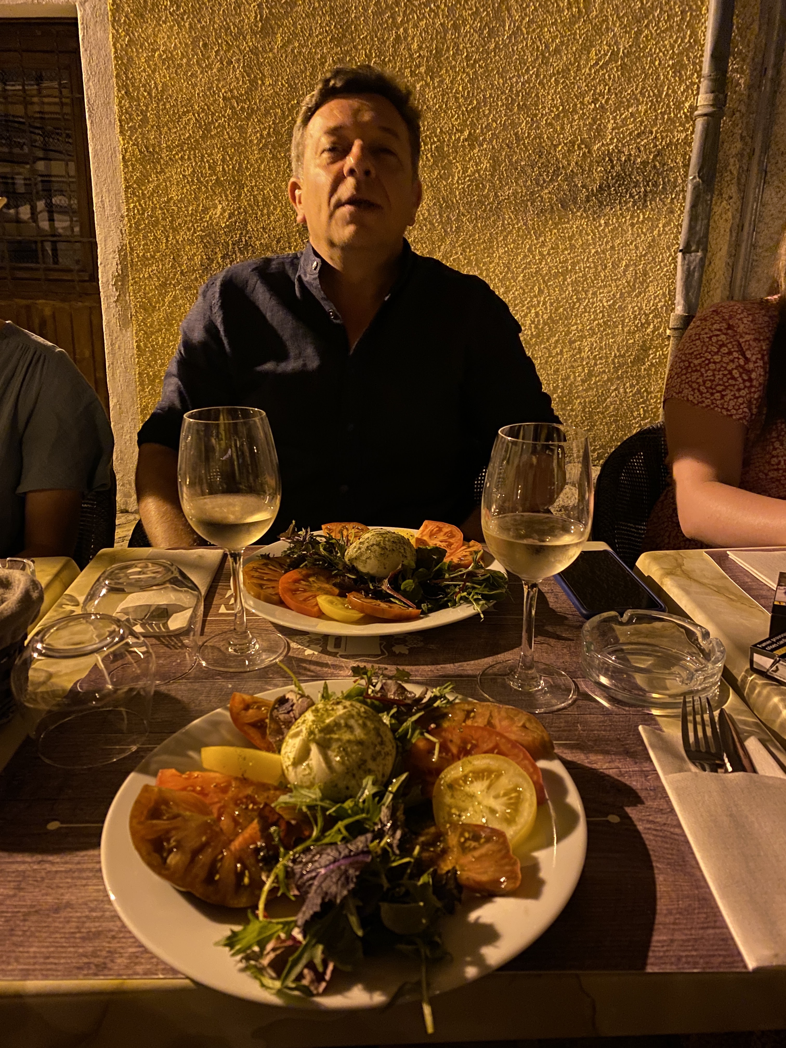 Agréable moment sur un petite place bien ventilée malgré une chaude journée d'été, autour d'un repas délicieux.