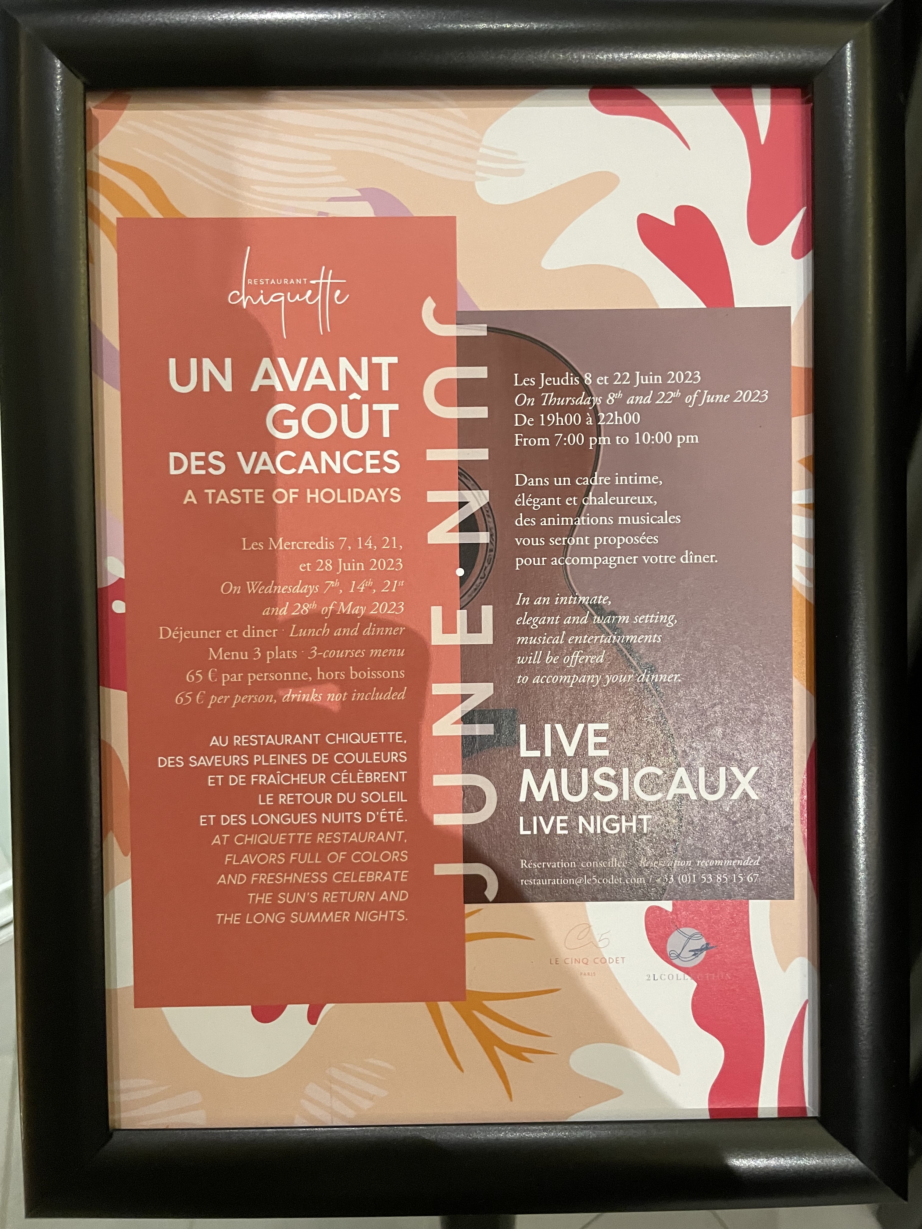 Nous avons passé le nouvel dans l'hôtel 5Codet avec le dîner au restaurant Chiquette de l'hôtel. Nous nous sommes régalé d'une cuisine raffinée et délicieuse et d'un service exceptionnel. Merci pour tout.