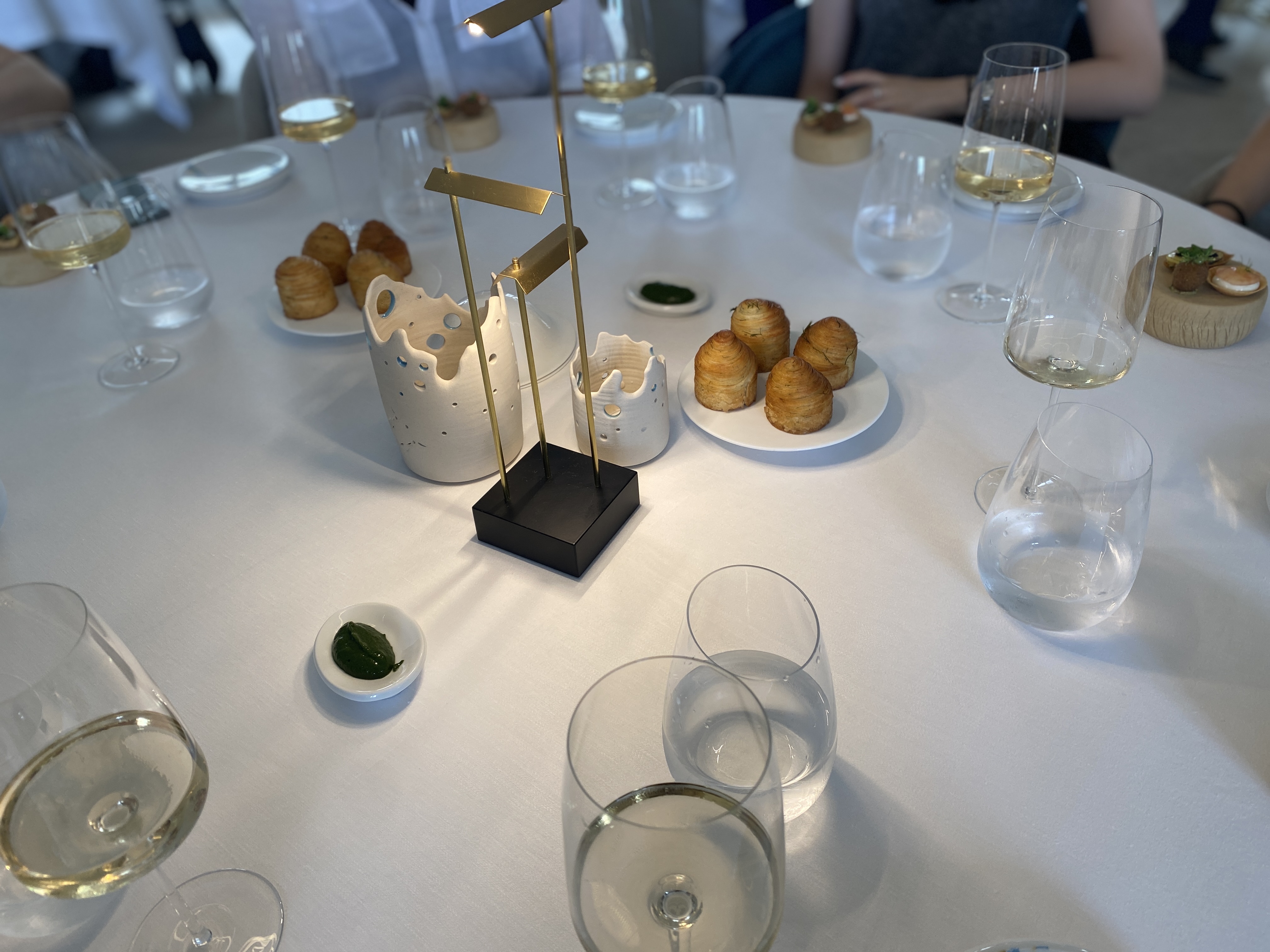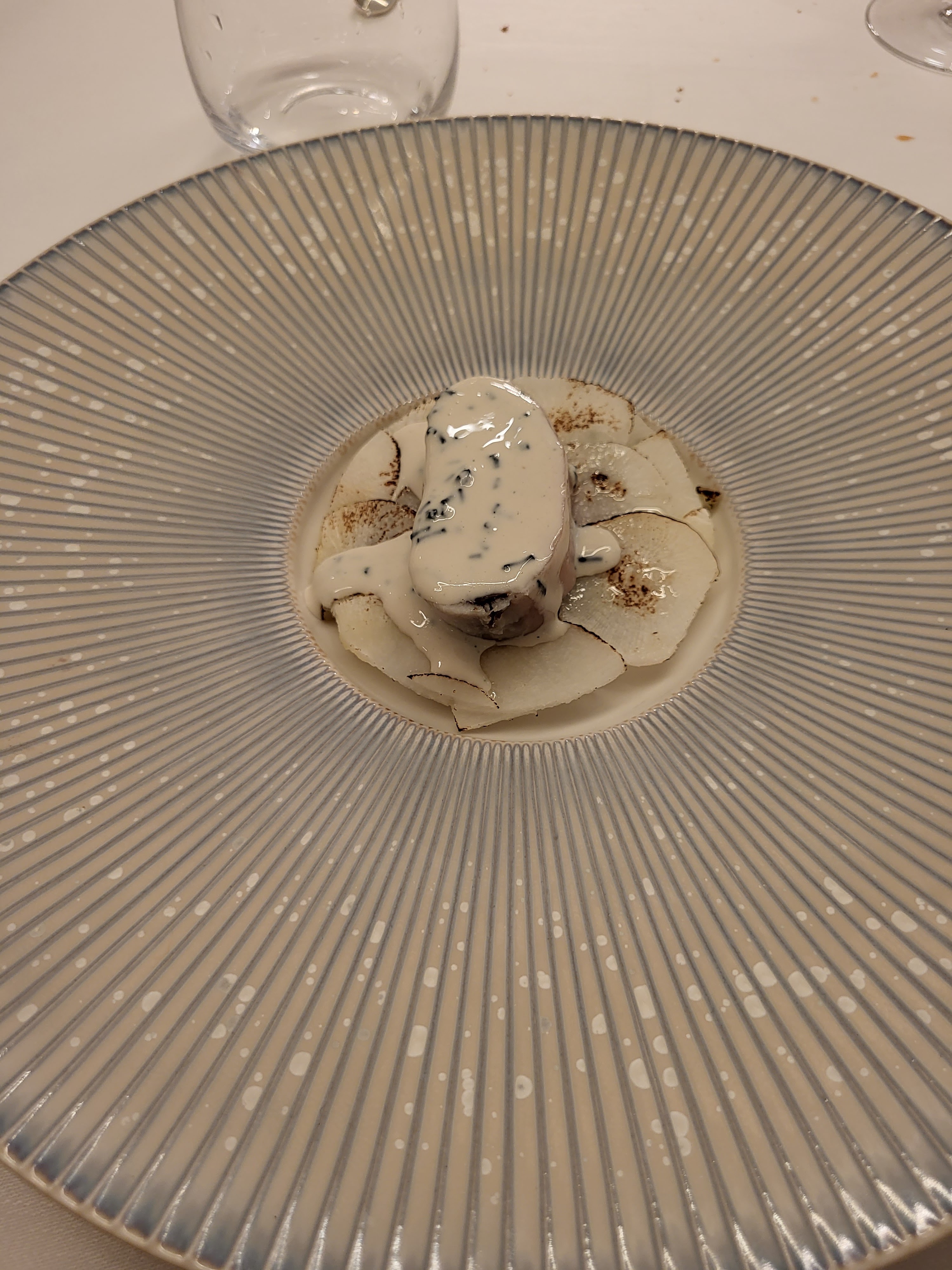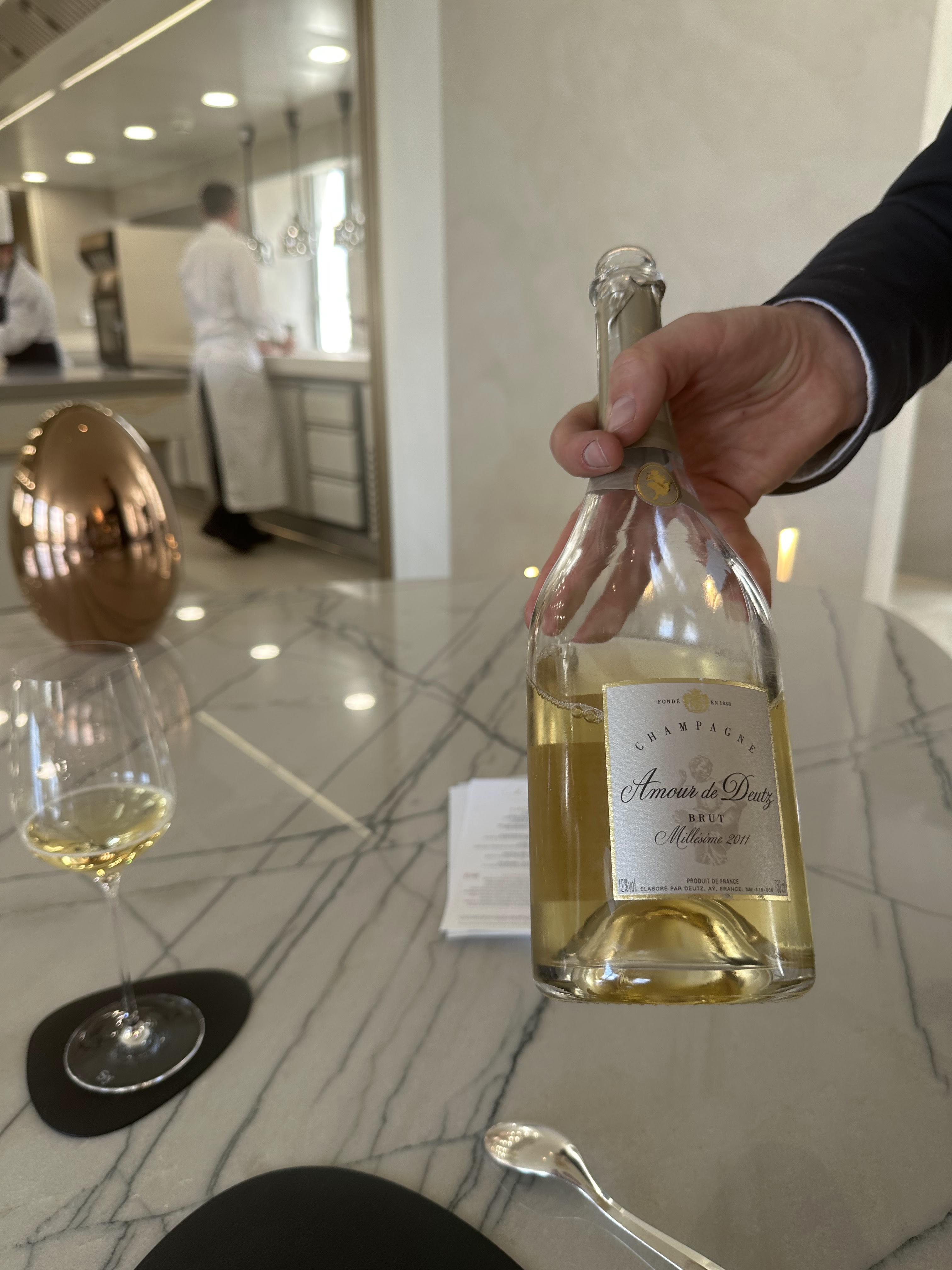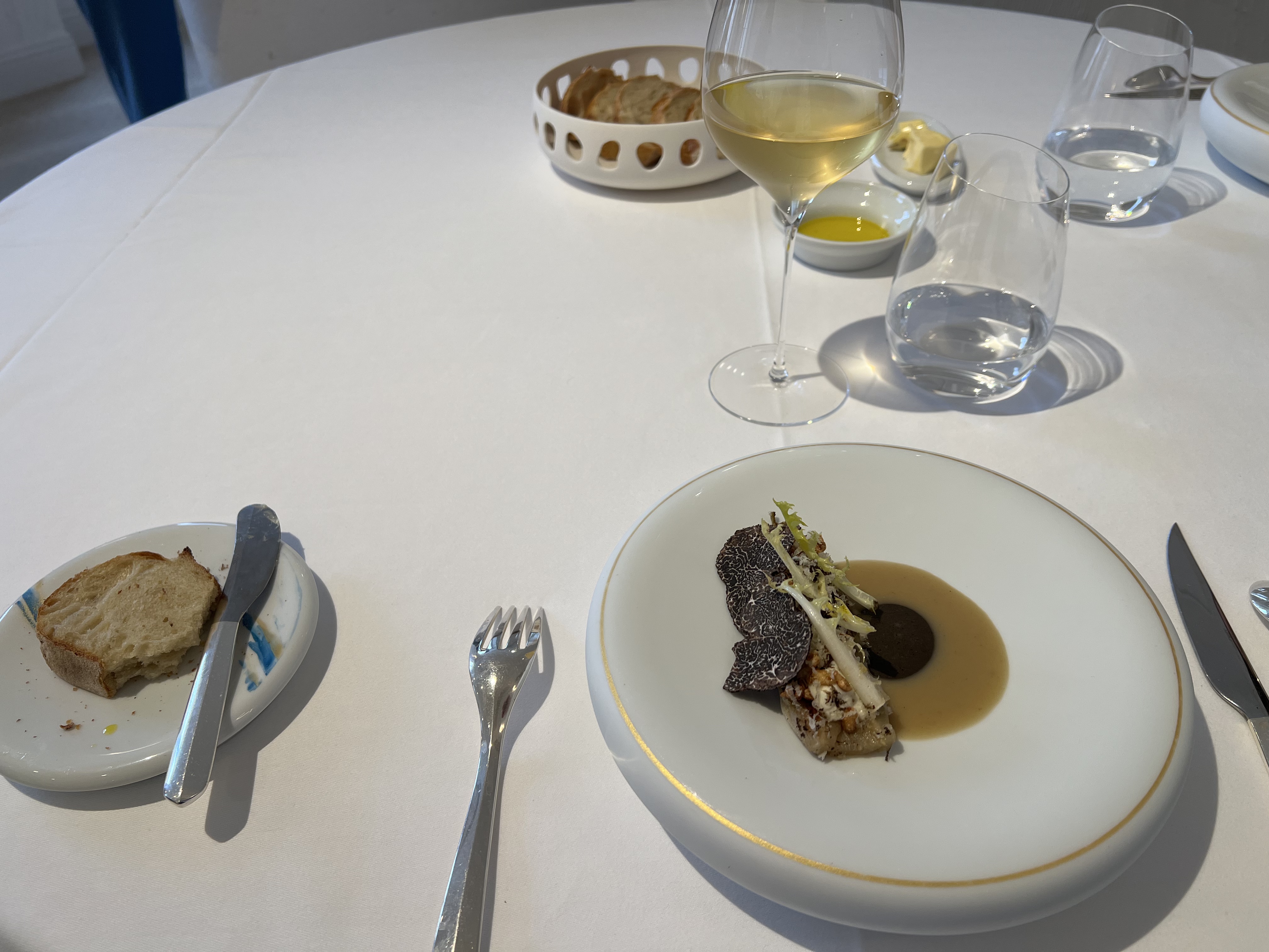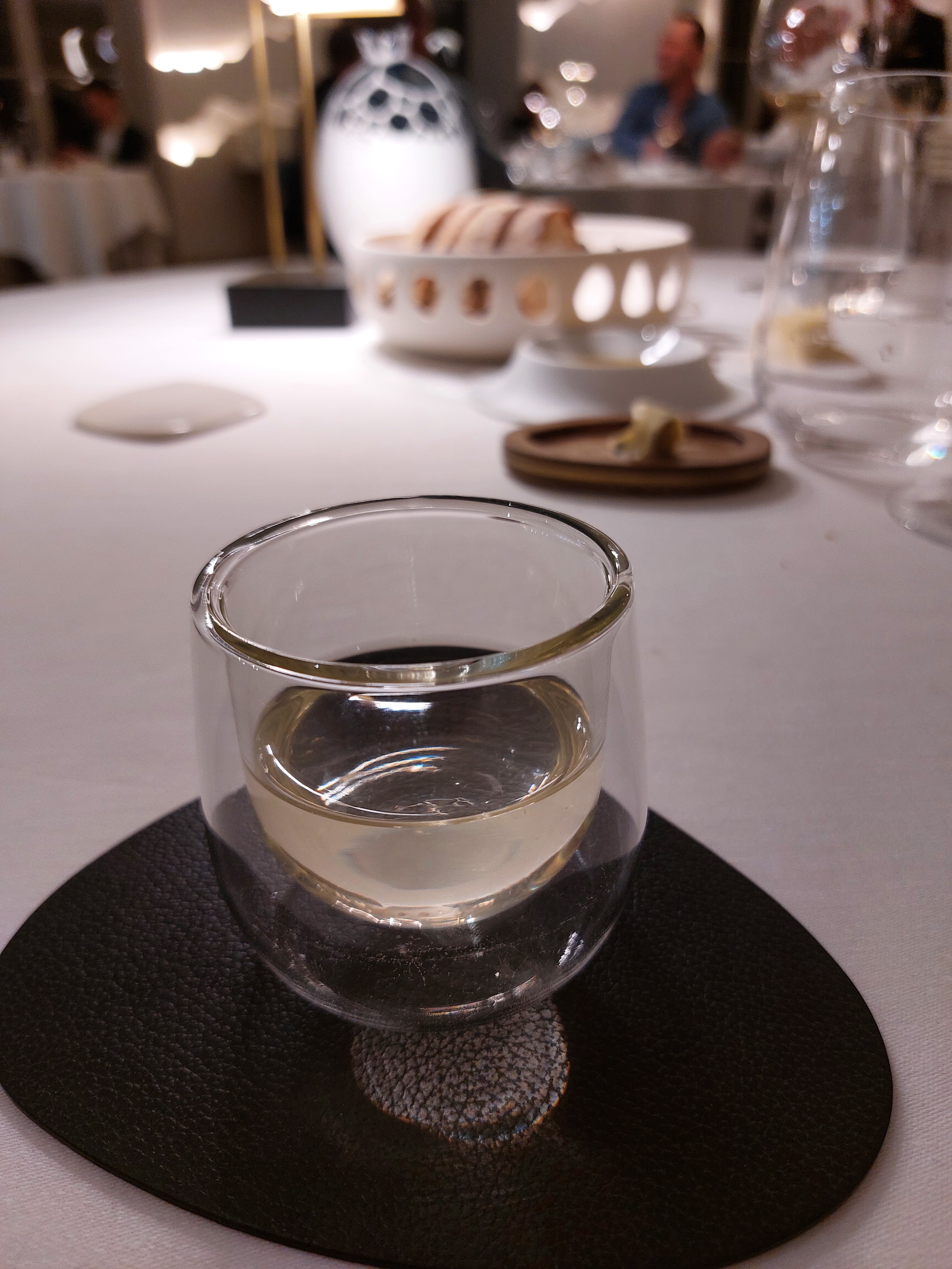 Mon mari et moi sommes venus découvrir la nouvelle table de ce chef que nous aimons beaucoup. Nous avons trouvé une cuisine de très grande qualité, agrémentée d’une magnifique vaisselle, accompagnée de délicieux vins merveilleusement servis et commentés par Yunus. Le service des plats était toujours soigné et intéressant par une équipe professionnelle. Quelques bémols néanmoins - forts décevants pour une table de ce standing : le manager de salle nous a reçus de manière glaciale, pas un sourire pas un mot d’accueil, ouvertement désagréable à notre égard, il nous a ensuite assis sans prendre notre vestiaire qu’il a fallu réclamer (alors que nous sommes en hiver) et sans offrir de tabouret pour mon sac à main (contrairement à toutes les autres tables); des taches sur la nappe étaient cachées sous la vaisselle; et pour finir nous avons été oubliés pour le café et avons fini par partir sans le prendre. En partant nous avons partagé notre ressenti au dit manager qui ne s’est pas du tout remis en question. Sa collaboratrice nous a gracieusement offert l’apéritif en consolation.