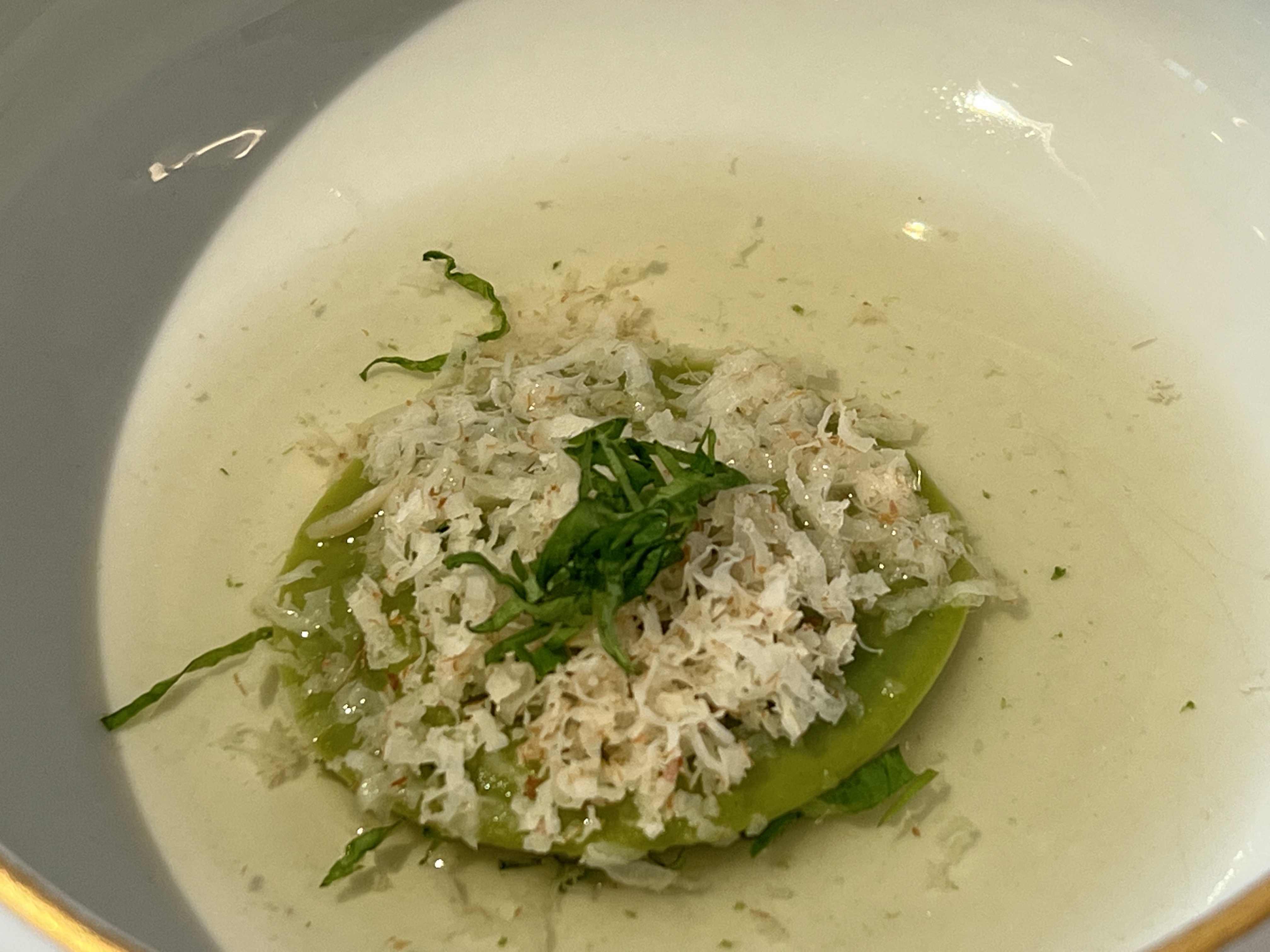 Incroyablement délicieux et parfait et bien meilleur que mon voyage à la French Laundry il y a quelques mois. Une expérience merveilleuse. Nous avons hâte d'y retourner un jour. J'ai adoré la terrine « oreiller ». Le soufflé était à tomber par terre. Essayez de vous asseoir avec une vue rapprochée de la cuisine. Ils ont fait un excellent travail en ajustant le repas pour mon rendez-vous qui ne peut pas manger beaucoup de produits laitiers, en particulier le chef des desserts qui lui a préparé un dessert aux figues à quatre façons. Le service était incroyable. Merci pour ce repas incroyable. Inoubliable.
