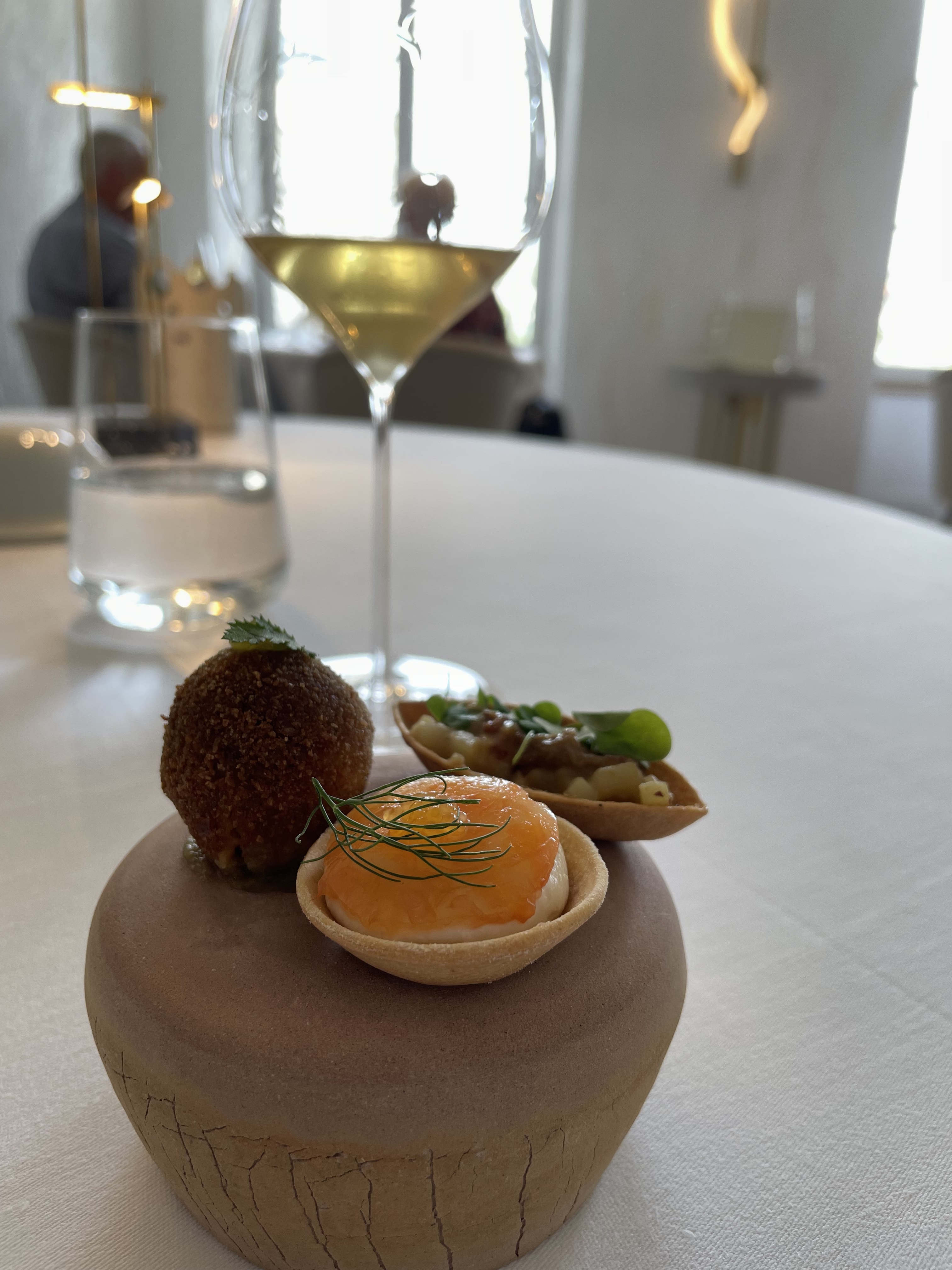 Bel emplacement! Intérieur relaxant de l'hôtel et du restaurant. Au restaurant, vue sur la cuisine ouverte où les chefs préparent les plats en harmonie. Il y avait un menu de 4 plats. Tous les plats étaient expliqués en détail. Suggestion fantastique du vin. Service excellent. Une véritable expérience. J'ai déjà visité/expérimenté plusieurs meilleurs restaurants et celui-ci devrait certainement être ajouté. A refaire ! Haut!