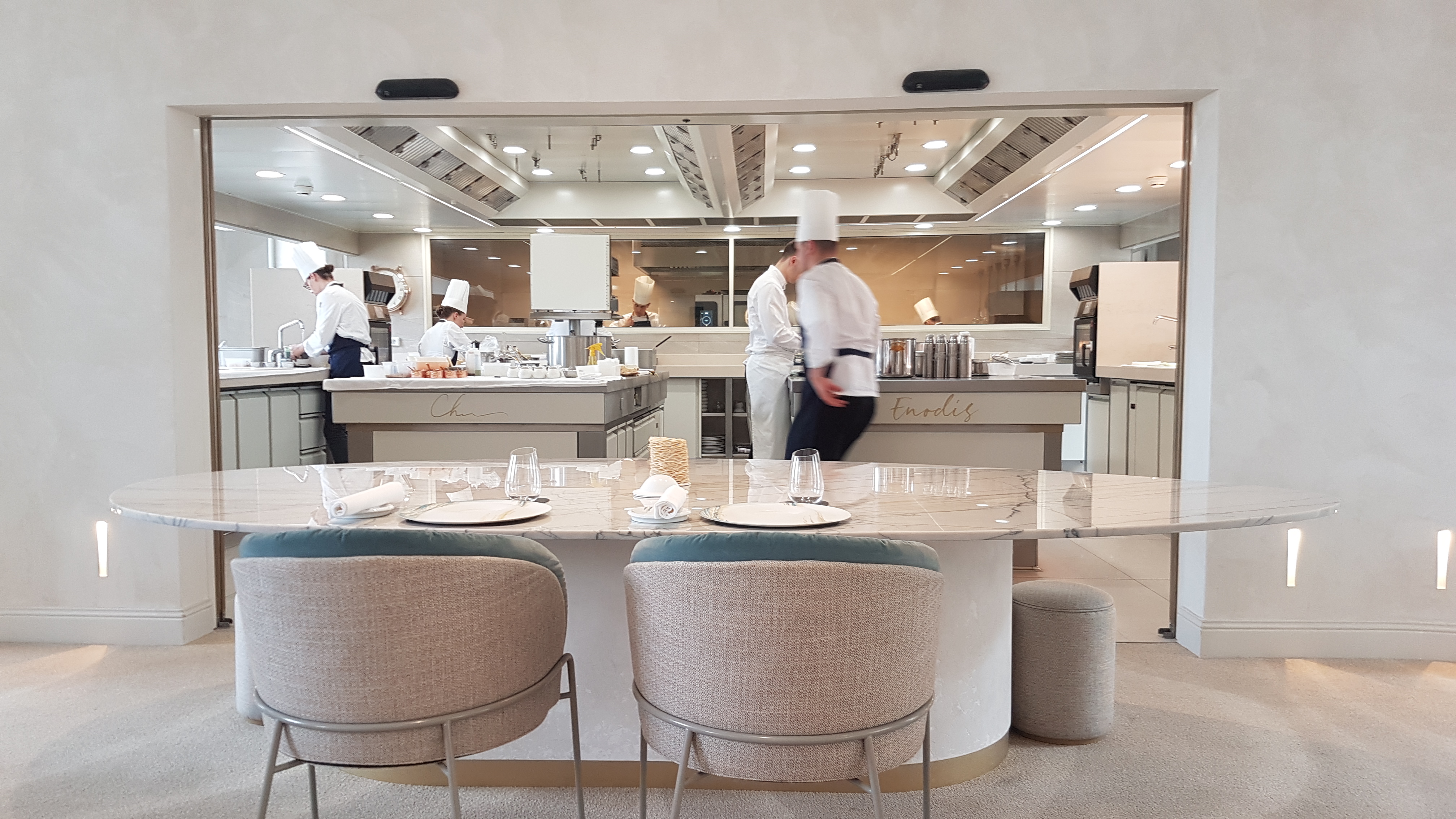 Cuisine ouverte Chef présent en salle et en cuisine. Service 9 plats avec accord mets et vins. Magnifique de précision,de beauté, d inventivité, de textures différentes et de saveurs.