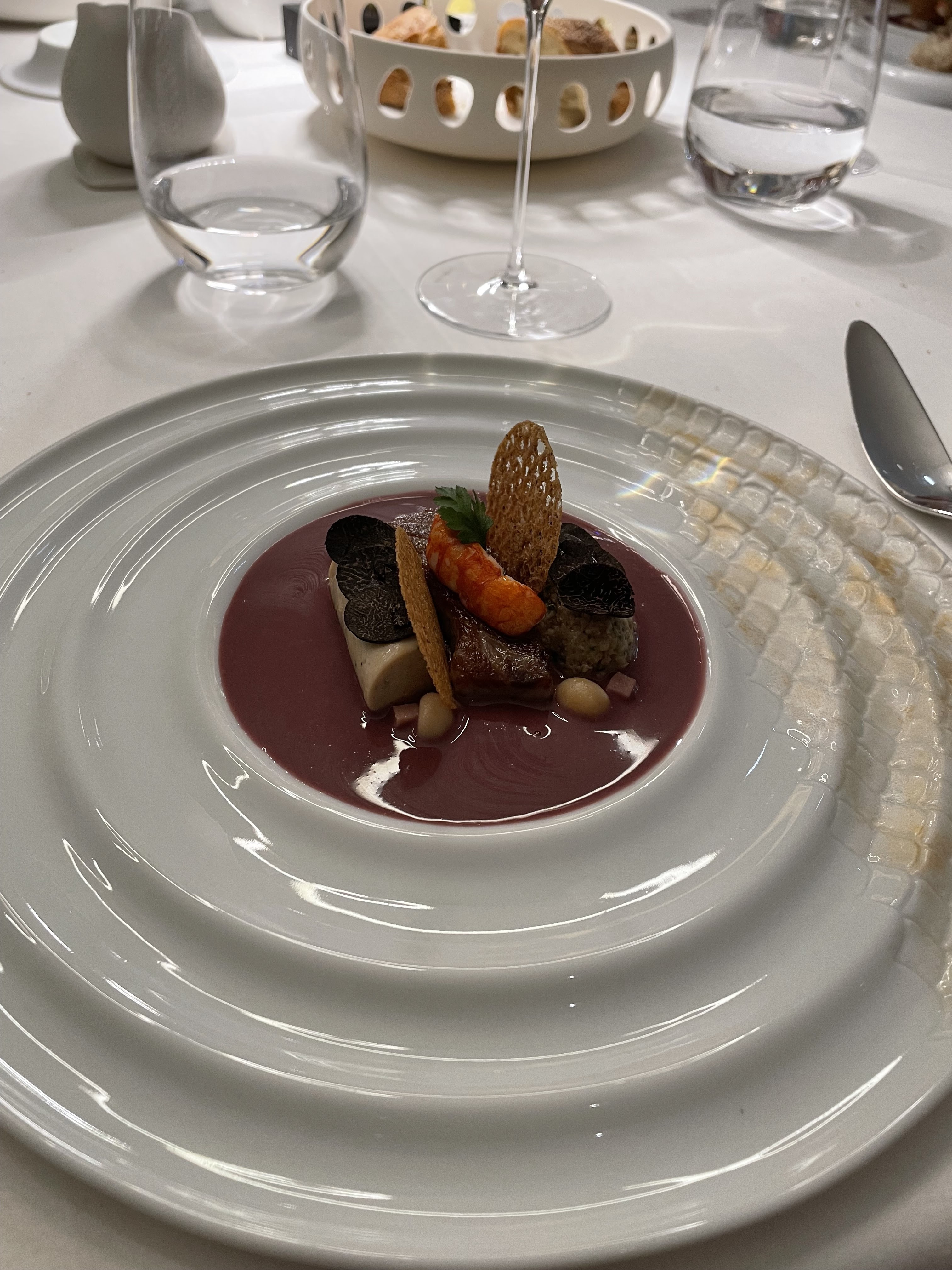 Très cher pour ce que c’était, l’accord de vins était 132€ pour l’équivalent de 3 verres de vin… bon service en général, quoi que le sommelier parlait trop vite et ne s’adressait qu’à mon mari.