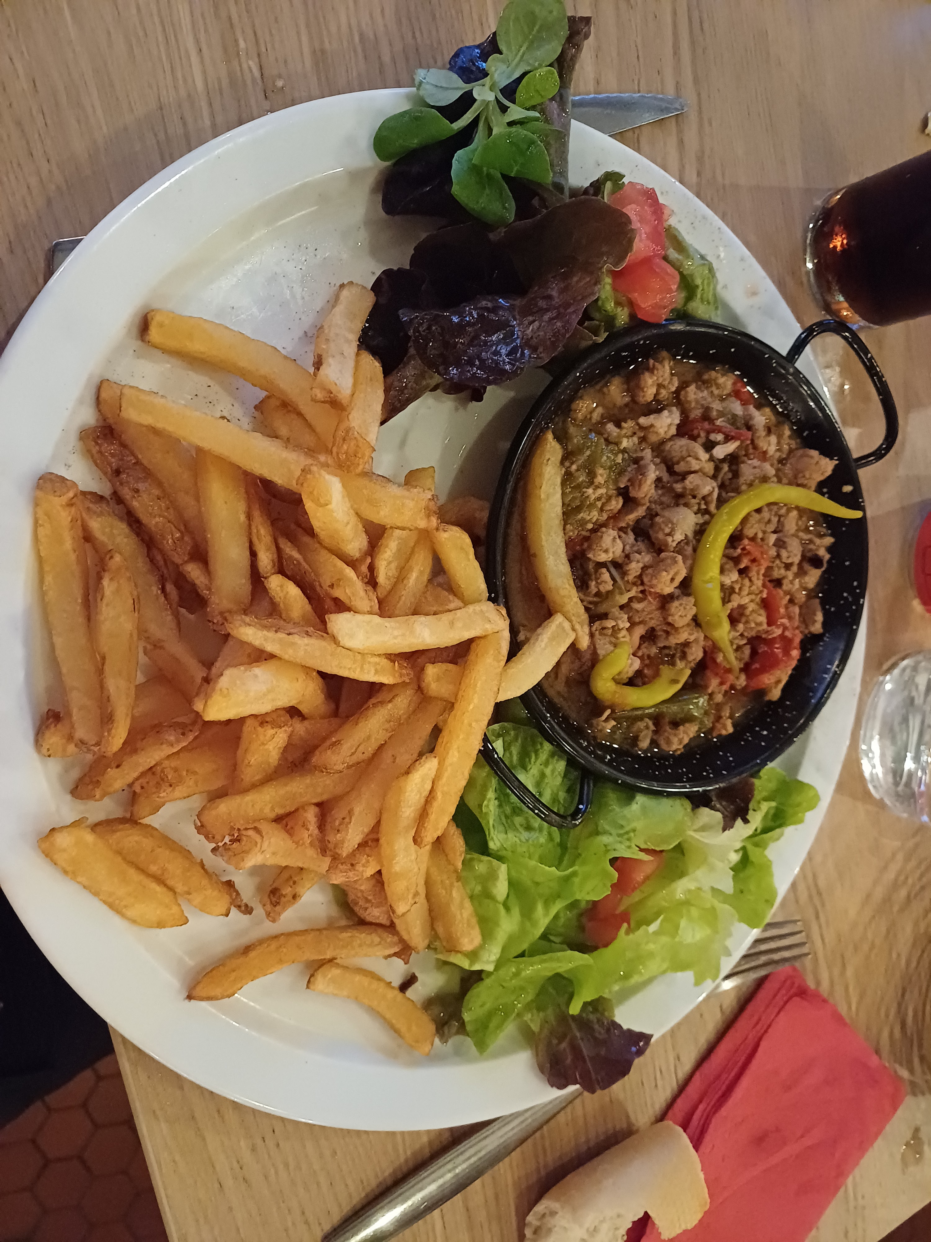 La qualité prime sur la quantité :). Bon on m'a servi une salade césar au lieu de la chèvre chaud que j'avais commandé mais elle était très bonne donc sans rancune (ca arrive dans pas mal de resto). Des frites excellentes, pareil pour les tartares (selon mes voisins de table) bref pas grand chose a redire :)