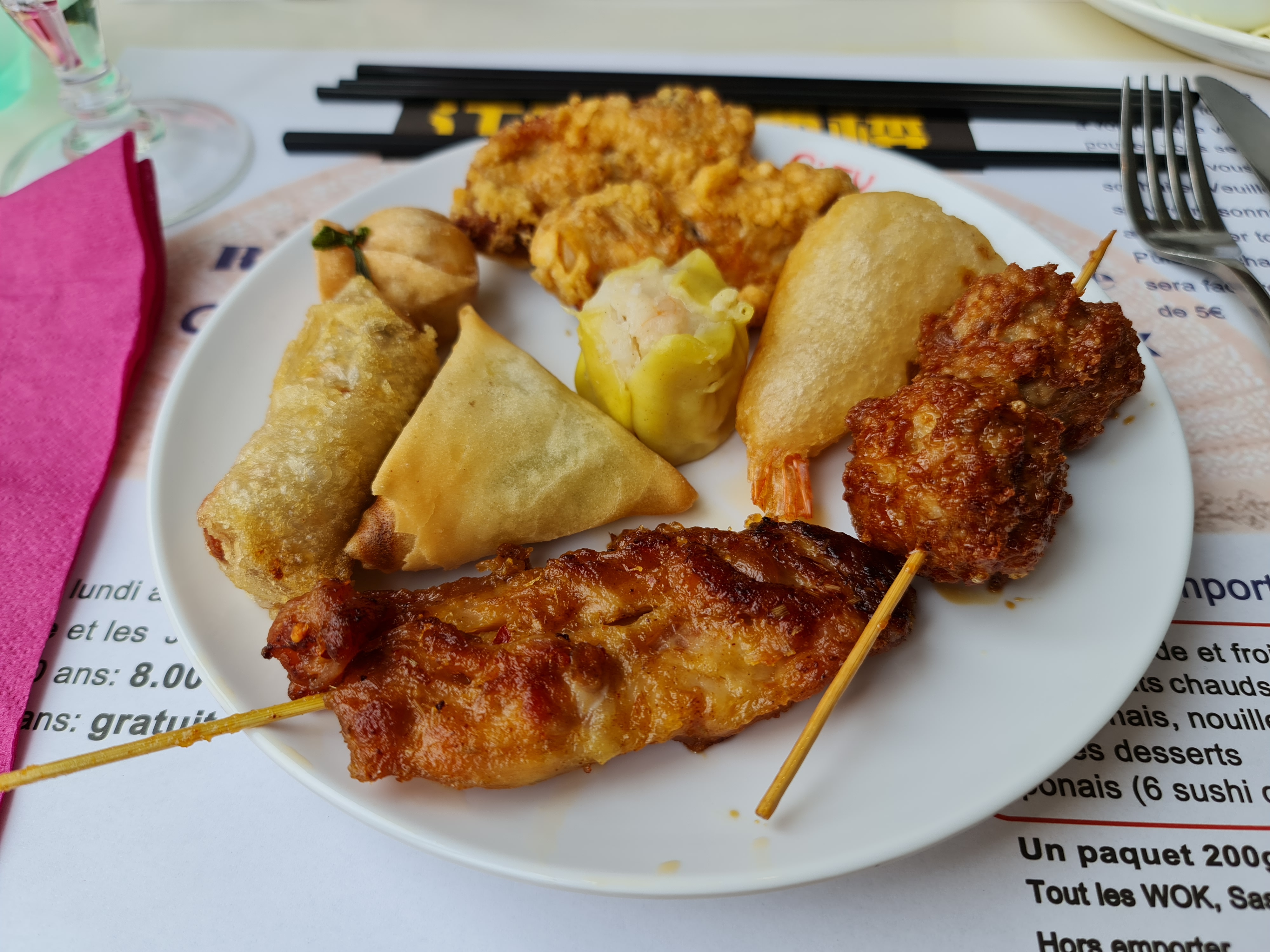 Franchement j'y suis allé à midi avec 2 amis et on a été déçu. Déjà par l'accueil assez froid , on a l'impression d'être dans une cantine. Les nems , samousas etc... ne sont pas bonnes . Grosse déception sur la partie wok , très peu de choix , boeuf et poulet sans saveur. Mention honorable pour les quelques gambas et surtout le choix important de parfum pour les glaces (mangue , framboise , cassis etc...) , ainsi qu'un choix assez respectable de fruit. Honnêtement je préfère mettre 1€ de plus à l'Indochine qui est situé pas très loin mais qui est fermé le Lundi.