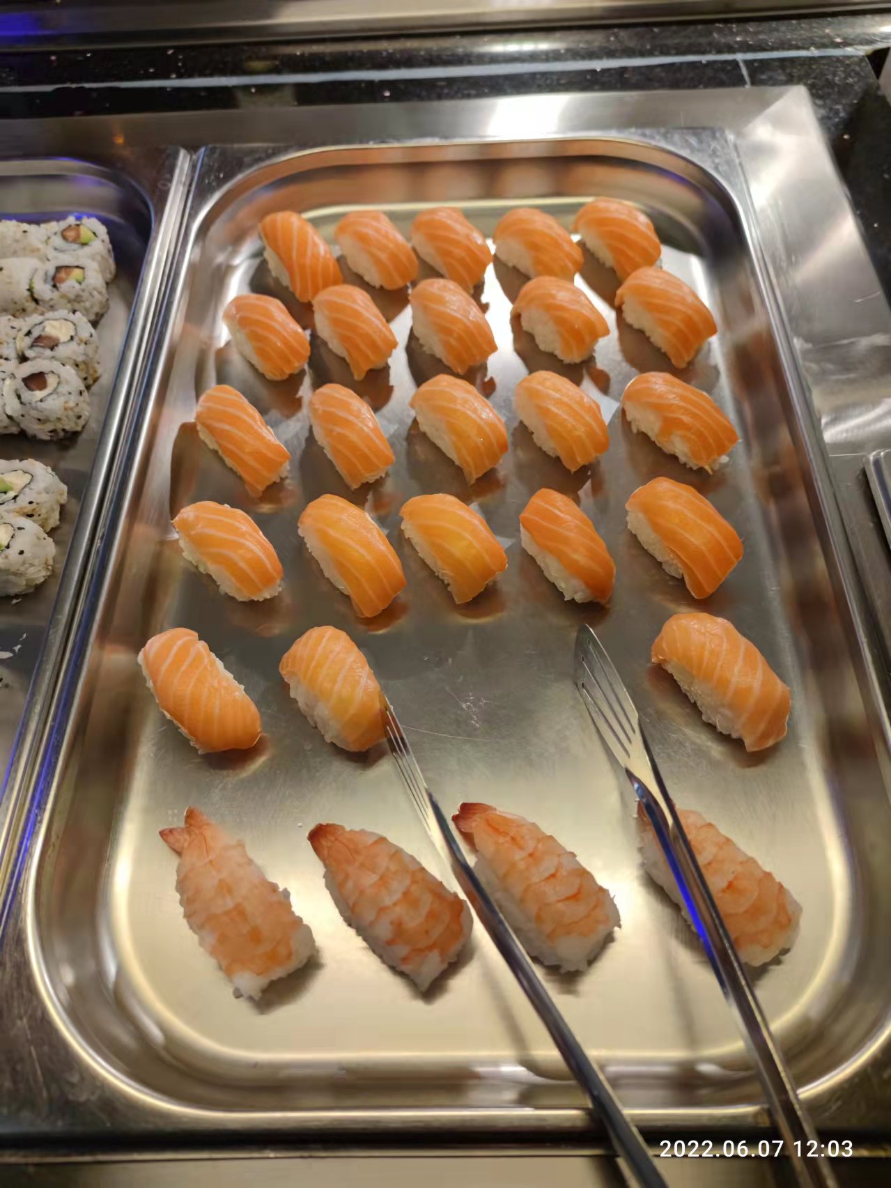 Le gros point faible du buffet est la qualité du saumon. Je n’ai jamais vu ni manger du saumon si gras dans ce type de restaurant, et cela se voit à vu d’œil. De ce fait le goût n’est pas au rendez vous, et le choix non plus d’ailleurs.