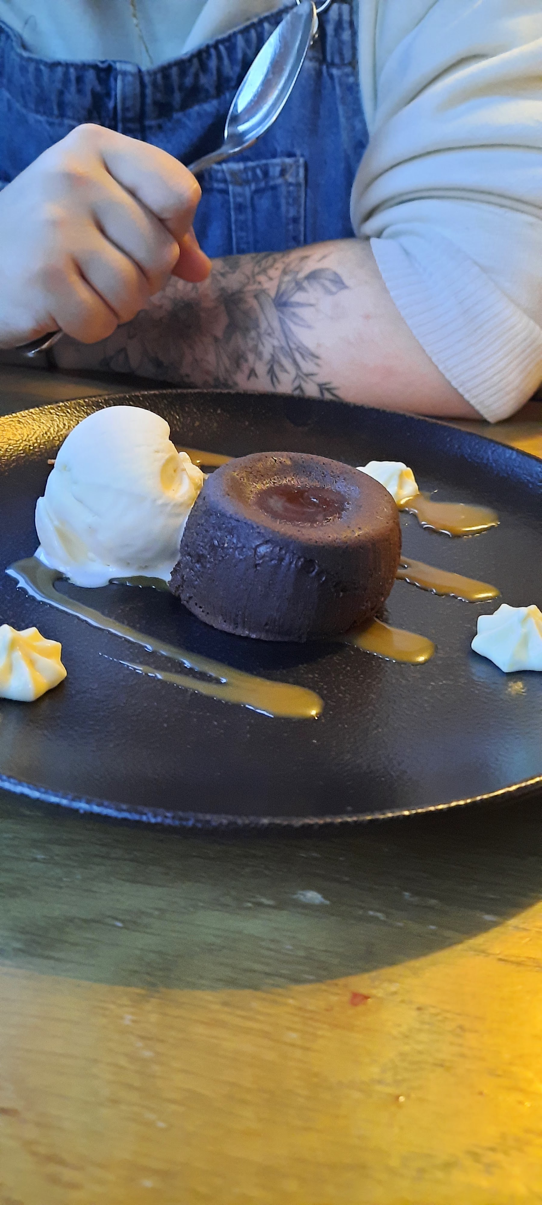 Dîner St Valentin bon rapport qualité prix. Service attentionné. Dessert un petit court en quantité pour 2 à partager