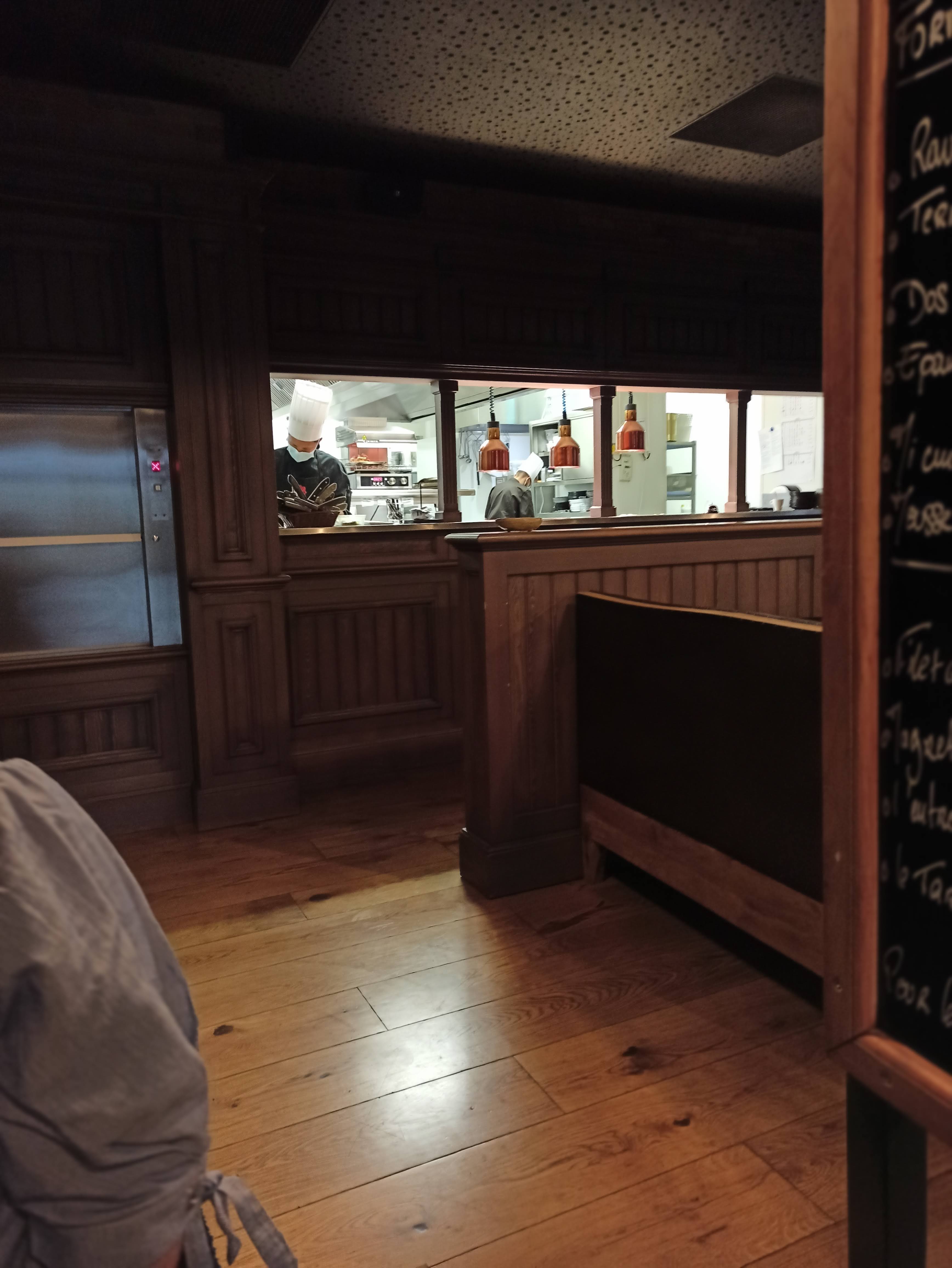 Les plus : - très beau bâtiment extérieur, agréable ambiance intérieure ( bien qu'un peu sombre), siège confortable, service rapide, des efforts pour la présentation du plat. Les moins : - accueil plutôt froid. La serveuse nous demande ce que nous prendrons comme boisson, notre réponse une carafe d'eau ne lui convient pas, elle insiste en demandant plate ou gazeuse... cela n'est pas acceptable. La viande (rôti de veau) était immangeable tellement elle était dure, nous avons seulement mangé l'accompagnement. À la ,commande, nous avions demandé le dessert et le café ensemble, ce dernier a été oublié, quand nous l'avons reclamé la serveuse a dit ah oui, le café en même temps et elle est allée discuter au bar avec trois de ses collègues, il a fallut redemander... Tout ceci est dommage ! Je ne recommande pas.
