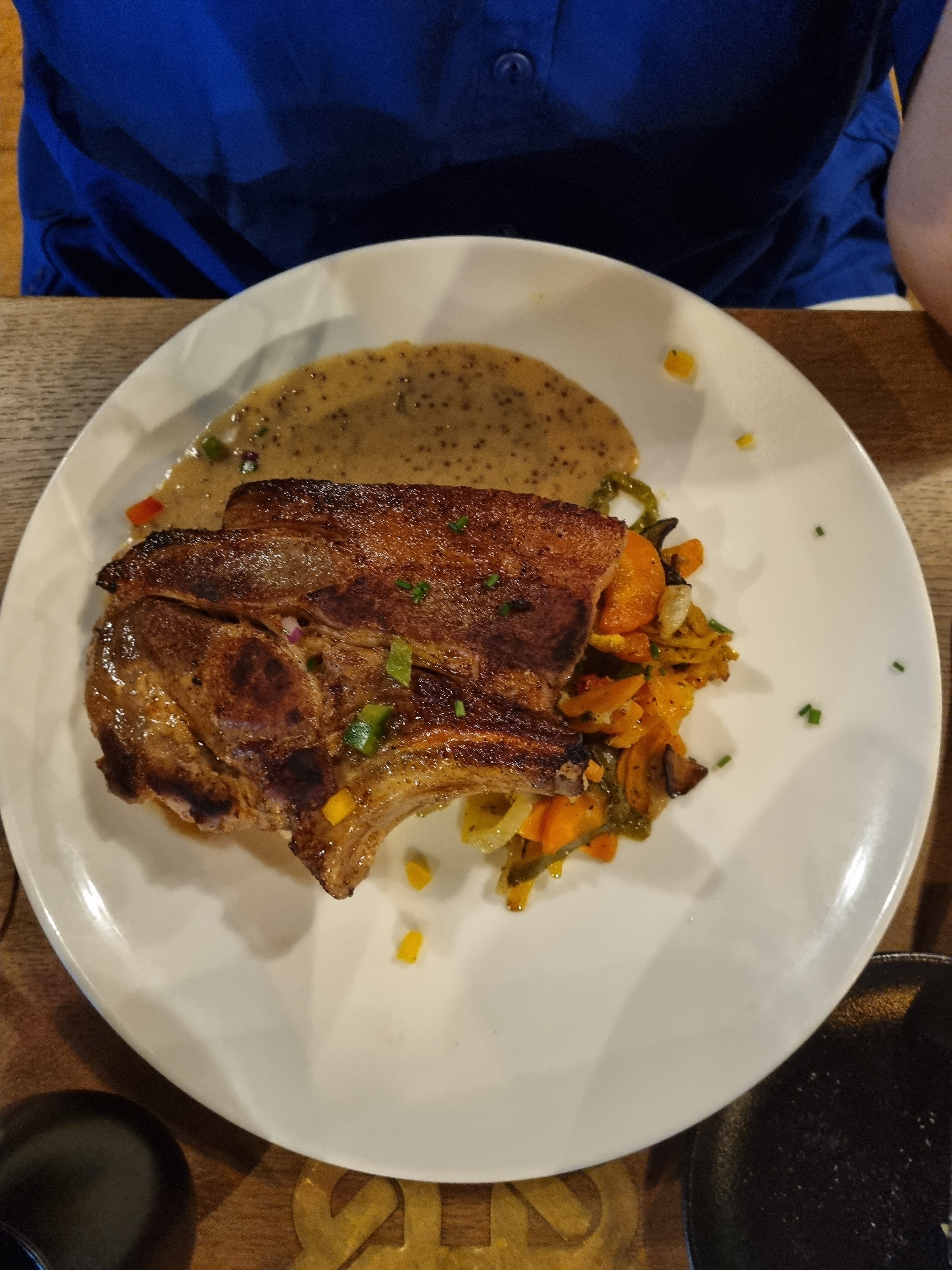 Personnel très accueillant, bon esprit de service et attentif aux clients. Plats inégaux en qualité, j étais déçue avec ma salade sans saveur manquant de légumes. Les plats de viande sont copieux mais pas assez de garniture avec la côte de cochon. Le cadre et le décor est agréable et chaleureux. La note sympathique c était le dessert.