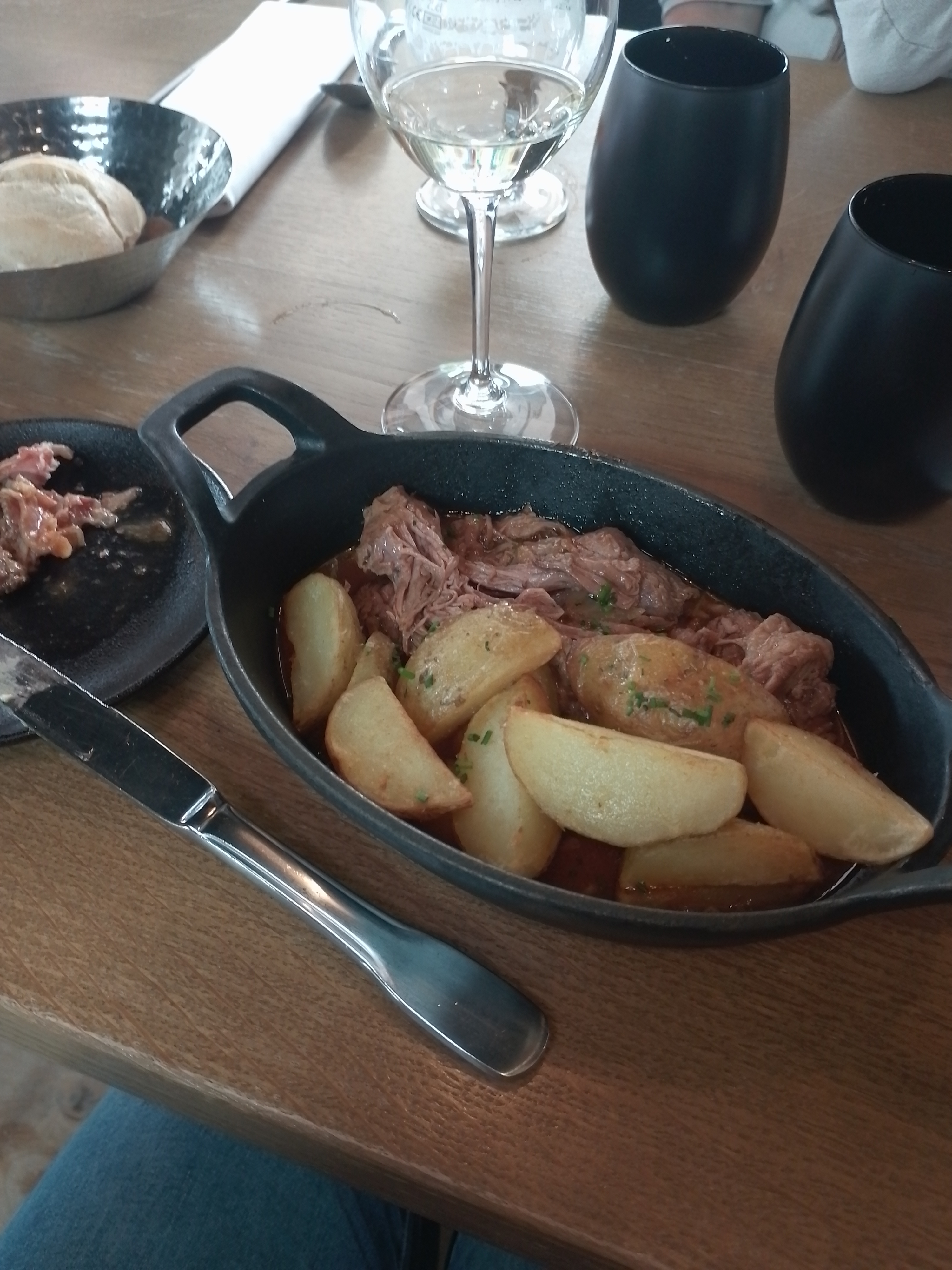 Cadre sympa, par contre décevant au niveau du repas. Pour le plat choisi : Paleron de veau à la sauce bourguignonne, le dressage de l'assiette à été expédié (patates déposées à la hâte dans l'assiette ) et fallait se contenter de peu de sauce qui n'avait pas vraiment le goût d'une bourguignonne ! Et puis il faut photographier les différentes ardoises pour faire son choix à l'aide de votre téléphone. Pas vraiment pratique !