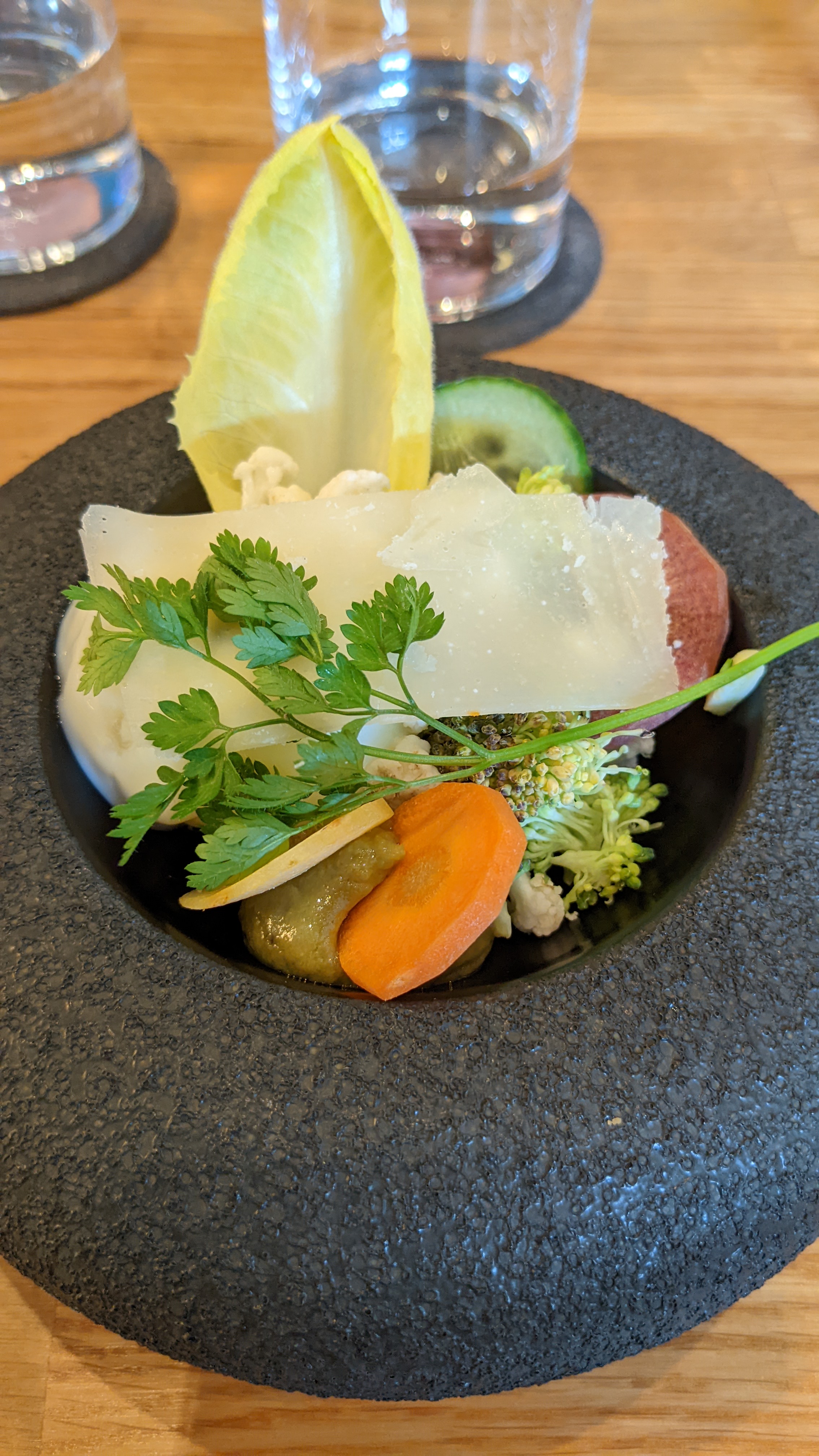 Une magnifique découverte. La Chef décline les légumes d'une manière magistrale. Belle présentation des plats délicieux à souhait. L'accueil par le Patron et ses Collaborateurs est convivial, souriant. Le cadre est soigné et de très bon goût. Service impeccable. Le seul bémol, la cadence à laquelle se succèdent les plats est un peu trop rapide. L'accompagnement des vins est top et judicieusement commenté par la Maître de Maison. Une charmante adresse à retenir et surtout y revenir.
