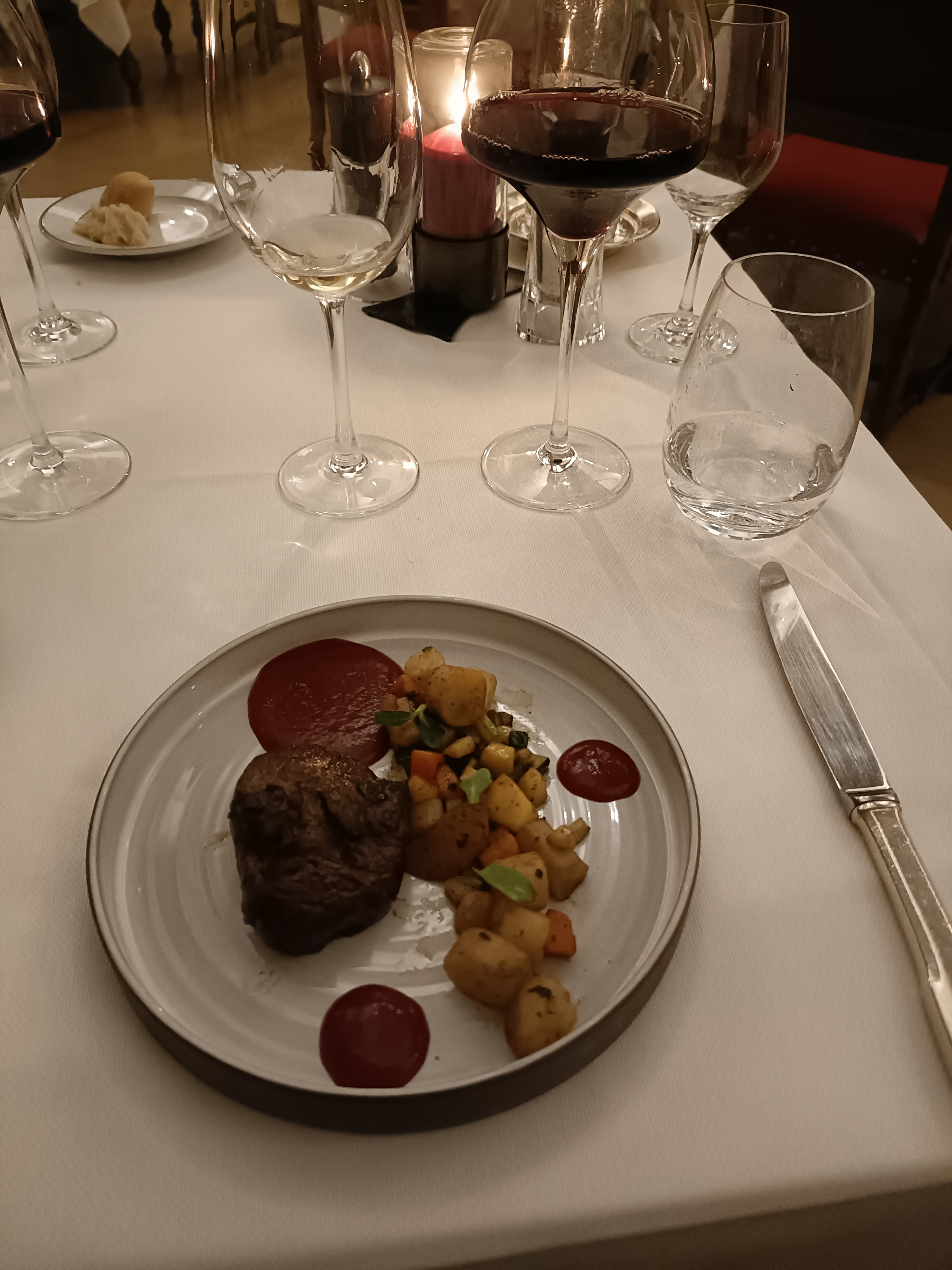 Super restaurant avec de très bons plats. Carte des vins haut de gamme et prix un peu plus élevé. Ambiance incroyablement belle - idéale pour une soirée romantique. Avec plaisir encore