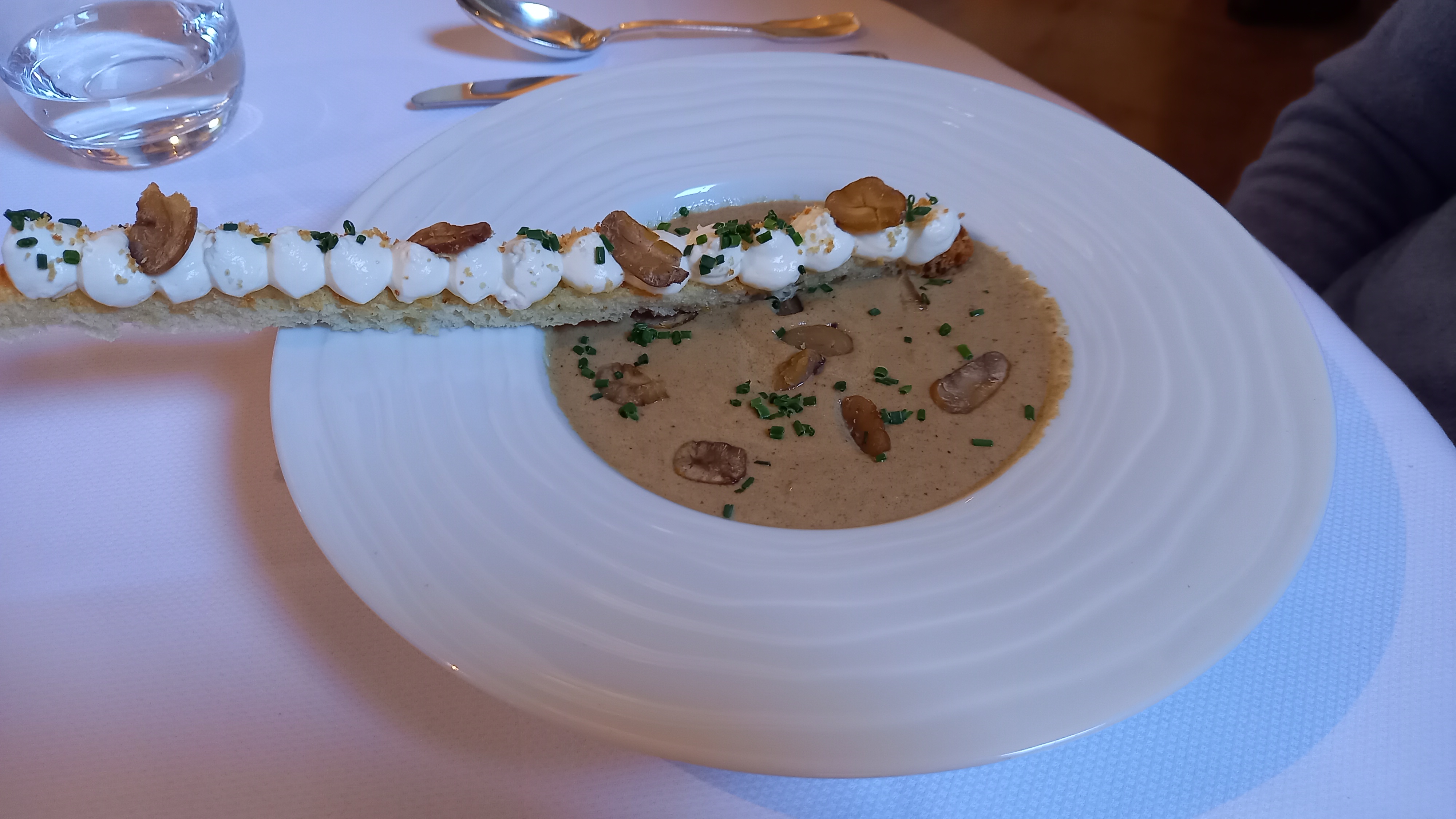 Très bel endroit, typique, classe et raffiné. Le velouté de potimaron est exquis ! Nous avons suivi les bons conseils du sommelier et avons dégusté un santenay 2019 au top Menus 45 ou 65 euros, comptez 70 à la carte par personne. Service très professionnel, au petit soin et discret. Nous n’avons manqué de rien. De très jolis salons à proximité.