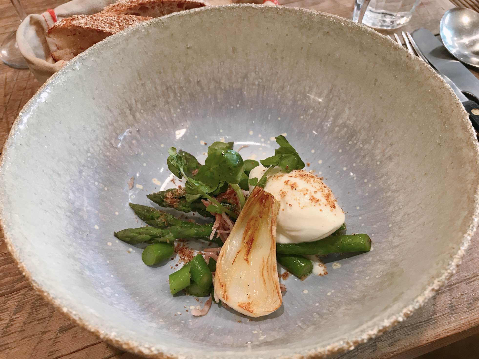 Après avoir fait la patisserie, le restaurant gastronomique et la brasserie de JF Piège je me devais d'essayer son restaurant ouvert avec sa femme. Alors un soir c'est parti on y va. Ils venaient d'ouvrir c'était pas encore hyper rodé (eux même l'ont dit). N'emmenez pas votre first date là bas car tout le monde est collé à la table voisine et c'est très bruyant. Rien d'intime donc mais ce n'est pas le but de la manoeuvre puisque les cuisines sont dans le prolongement des tables en mode nous ne faisons qu'un avec vous chers clients. Côté prix c'était raisonnable pour un chef étoilé, mais parait-il que les prix ont été ajusté par la suite. Le menu du soir était à 58€ et comprenant deux parties, la première avec des assiettes à partager (quinoa, chips de Saint-Jacques, Faux-gras de canard etc). Puis ensuite les assiettes chacun pour soi. L'une végétale avec différentes feuilles de chou, du hareng fumé du citron conflit... alors ok là vous vous dites c'est naze du chou du hareng mais c'est sans hésité la meilleure assiette de légumes que j'ai mangé depuis très très longtemps c'était juste parfait ! Ensuite un plat de viande, pas grand chose dans l'assiette mais au final on n'avait quand même plus faim en sortant. Pour le dessert, le parti pris est de ne pas basculer dans le trop sucré. Voici donc un petit crumble accompagné de courge butternut et une glace à la flouve odorante (une variété de blé en somme). Si la courge n'a pas retenu mes faveurs, c'est un tout autre destin pour la glace qui fut délicieuse. La clientèle : ceux à l'affut de la nouvelle tendance et du nouveau resto, on était entre une famille plutôt bobobio et deux nanas qui passaient leur temps à critiquer et emmerder les serveurs...